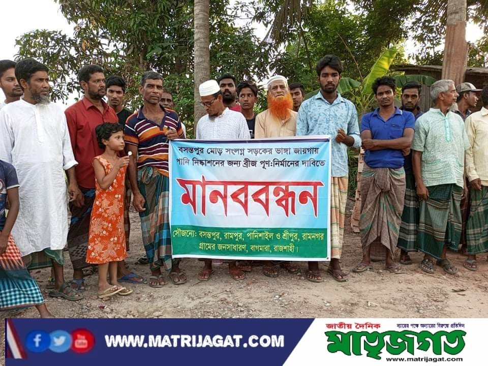 বাগমারায় ব্রীজ নির্মানের দাবিতে মানববন্ধন