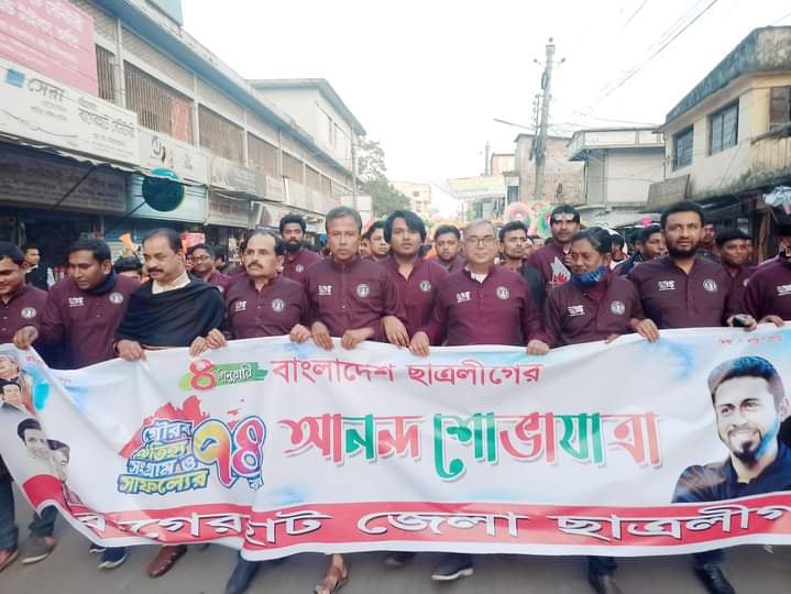 বাগেরহাটে ছাত্রলীগের ৭৪তম প্রতিষ্ঠা বার্ষিকী উপলক্ষে আনন্দ র্যালি,কেক কাটা ও আলোচনা সভা