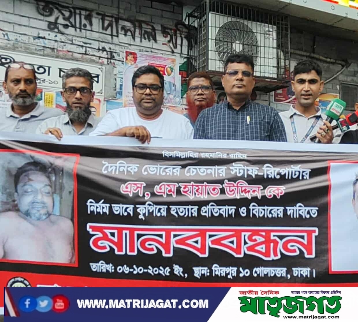 বাগেরহাটে সাংবাদিক হায়াত উদ্দিন হত্যার প্রতিবাদে মিরপুরে বাংলাদেশ সেন্ট্রাল প্রেস ক্লাবের মানববন্ধন,দ্রুত গ্রেফতার ও দৃষ্টান্তমূলক বিচারের দাবি সাংবাদিক সমাজের।