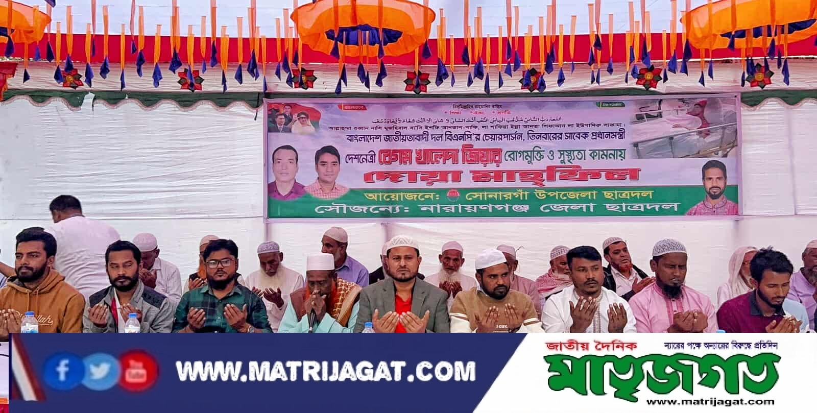 নারায়ণগঞ্জ জেলা ছাত্রদলের উদ্যোগে বিএনপির চেয়ারপারসন ও সাবেক প্রধানমন্ত্রী দেশনেত্রী বেগম খালেদা জিয়ার সুস্থতা কামনায় দোয়া মাহফিল অনুষ্ঠিত হয়েছে।