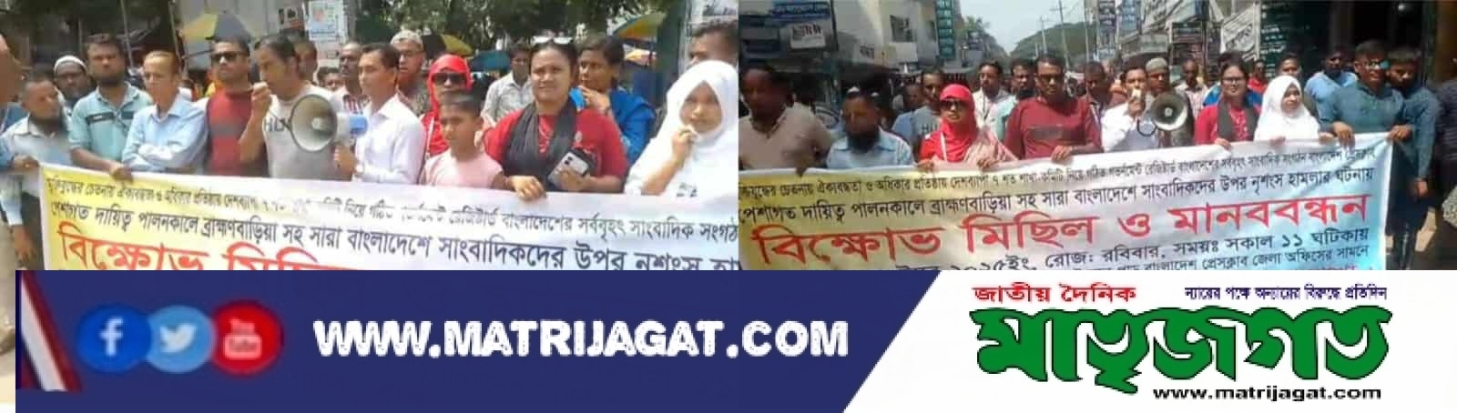 ব্রাহ্মণবাড়িয়ায় সাংবাদিক নির্যাতনের প্রতিবাদে বিক্ষোভ সমাবেশ ও মানববন্ধন