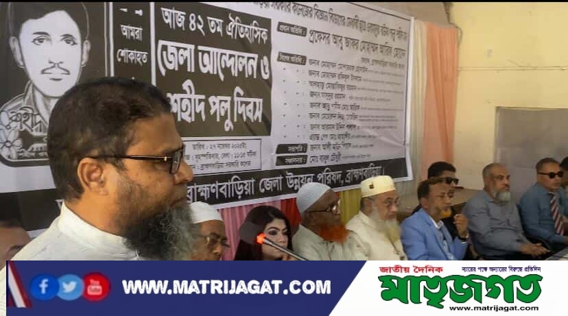 ব্রাহ্মণবাড়িয়া জেলা উন্নয়ন পরিষদের আয়োজনে যথাযোগ্য মর্যাদা ও ভাবগাম্ভীর্যের মধ্য দিয়ে পালিত হয়েছে ৪২তম ঐতিহাসিক জেলা আন্দোলন ও শহীদ পলু দিবস। বৃহস্পতিবার (২৭ নভেম্বর) বেলা ১১টা ১৫ মিনিটে ব্রাহ্মণবাড়িয়া সরকারি কলেজ মিলনায়তনে এই স্মরণসভা ও আলোচনা অনুষ্ঠান অনুষ্ঠিত হয়।