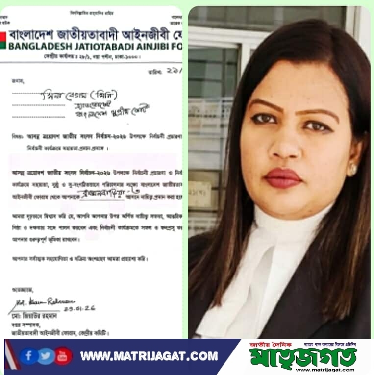বাংলাদেশ জাতীয়তাবাদী আইনজীবী ফোরামের পক্ষ থেকে ব্রাহ্মণবাড়িয়া-৩ আসনের গুরুত্বপূর্ণ দায়িত্ব পেয়েছেন বিশিষ্ট আইনজীবী অ্যাডভোকেট মিনা বেগম মিনি। আসন্ন ত্রয়োদশ জাতীয় সংসদ নির্বাচন-২০২৬ উপলক্ষে দলীয় প্রচার-প্রচারণা ও সাংগঠনিক কার্যক্রমকে আরও গতিশীল, সুসংগঠিত এবং কার্যকর করার লক্ষ্যে তাঁকে এই দায়িত্ব প্রদান করা হয়েছে।