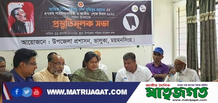 জাতির পিতা বঙ্গবন্ধু শেখ মুজিবুর রহমান এর ৪৭তম শাহাদাৎ বার্ষিকী ও জাতীয় শোক দিবস-২০২২পালন উপলক্ষে ময়মনসিংহের ভালুকায় প্রস্তুতিমূলক আলোচনা সভা অনুষ্ঠিত হয়েছে।