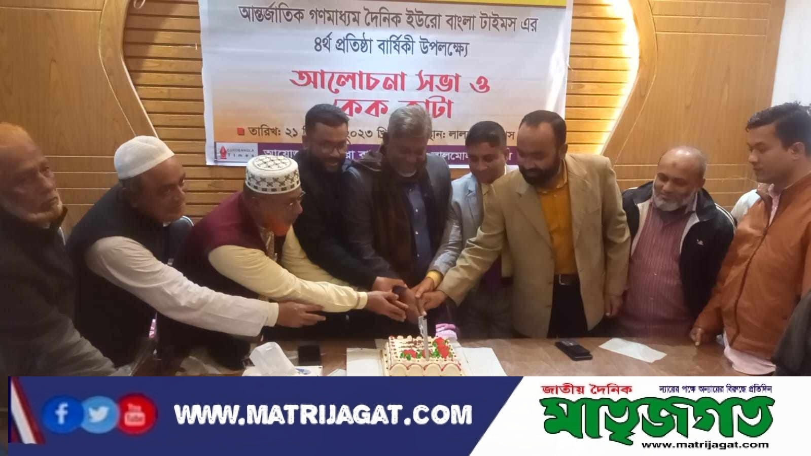 আলোচনা সভা শেষে কেক কেটে দৈনিক ইউরো বাংলা টাইমস এর চতুর্থ প্রতিষ্ঠা বার্ষিকী পালন করেন উপস্থিত সকলে।