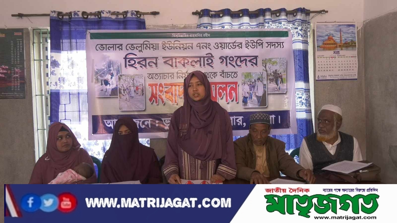 মোঃ হাসনাইন আহমেদ, ভোলা: ভোলা সদর উপজেলার ভেলুমিয়া ইউনিয়নের ৭ নম্বর ওয়ার্ডের ইউপি সদস্য হিরন বাকলাই ও তার ভাইদের বিরুদ্ধে জমি জবরদখল, অসদাচরণ ও নারীদেরকে শ্লীলতাহানির অভিযোগ তুলে সংবাদ সম্মেলন করেছেন ইউনূস ডাকুয়া নামের এক ভুক্তভোগীর পরিবার।