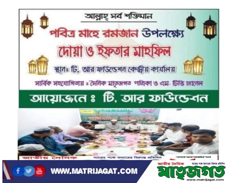 পবিত্র মাহে রমজান উপলক্ষে মাতৃ জগত পরিবার ও টি আর ফাউন্ডেশন এর যৌথ  উদ্যোগে ইফতার মাহফিলের আয়োজন করা হয়।