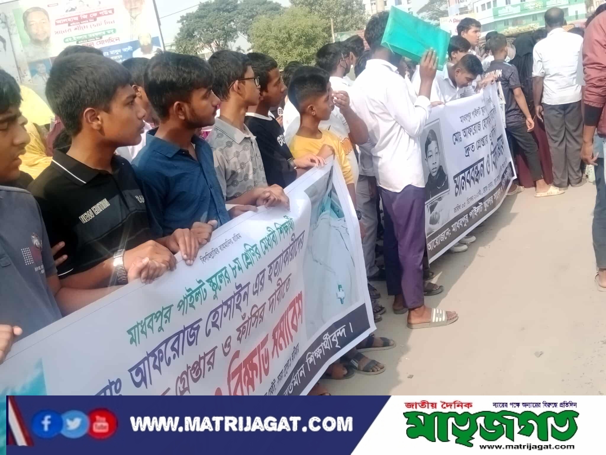 মাধবপুরে আফরোজ হত্যার বিচারের দাবিতে মানববন্ধন