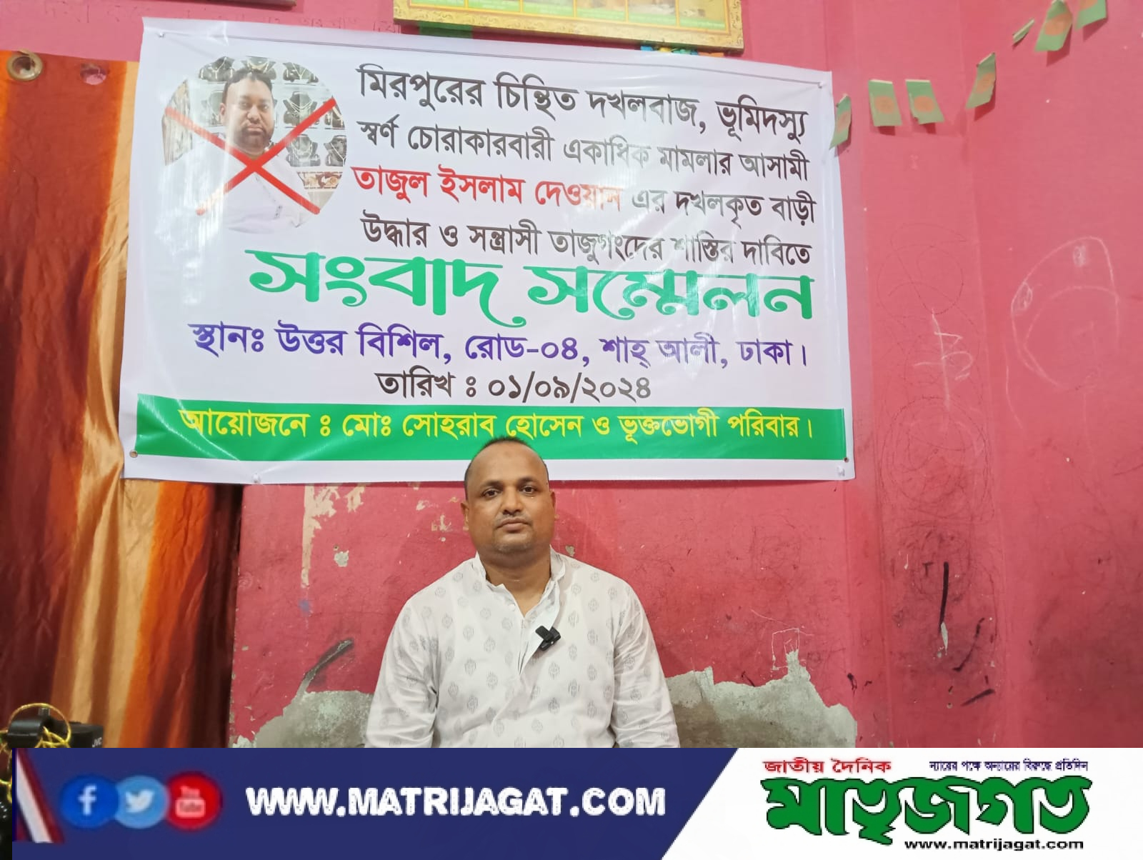 রবিবার শাহ আলী থানাধীন উওর বিছিল এলাকায় এ সংবাদ সম্মেলন করেন ভুক্তভোগী সোহরাব হোসেন ও তার পরিবার।