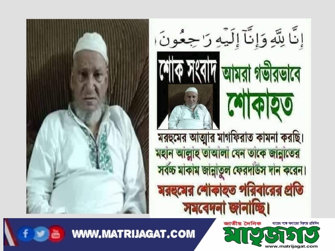 মিরপুর প্রেসক্লাবের প্রচার সম্পাদক সাংবাদিক মোঃ নিজাম উদ্দিনের বাবা হাজী মোঃ রহম আলী মাদবর(৯৫) অদ্য সকাল ৮ ঘটিকায় সেকশন ১২ ব্লক-ই,লেন-৫,বাসানং ৪৩ মিরপুর কালশি নিজ বাড়িতে শেষ নিশ্বাস ত্যগ করেন মৃত্য কালে তার ৫ ছেলে ৪ মেয়ে ও অসংখ্য নাতিনাতনি গুনাগ্রহী রেখে গেলেন। মরুহুমের জানাজা অনুষ্ঠিত হয় কালশি জামে মসজিদে।জানাযা শেষে কালশি কবরস্থানে স্ত্রীর কবরের উপরে তাকে সমাহিত করা হয়। মরুহুমে মাফকেরাত কামনায় আগামী মঙ্গলবার বাদ আাসর কালশি জামে মসজিদে মিলাদ ও দোয়া মাহাফিল অনুষ্ঠিত হবে। সকলের উপস্থিত কামনা করছি। শোক জানিয়েছে মিরপুর প্রেসক্লাবের সভাপতি এম. এন. জামান কামাল ও মিরপুর প্রেসক্লাবের সাধারণ সম্পাদক মো. আমিনুল ইসলাম রিপন সহ সাংবাদিকবৃন্দ।