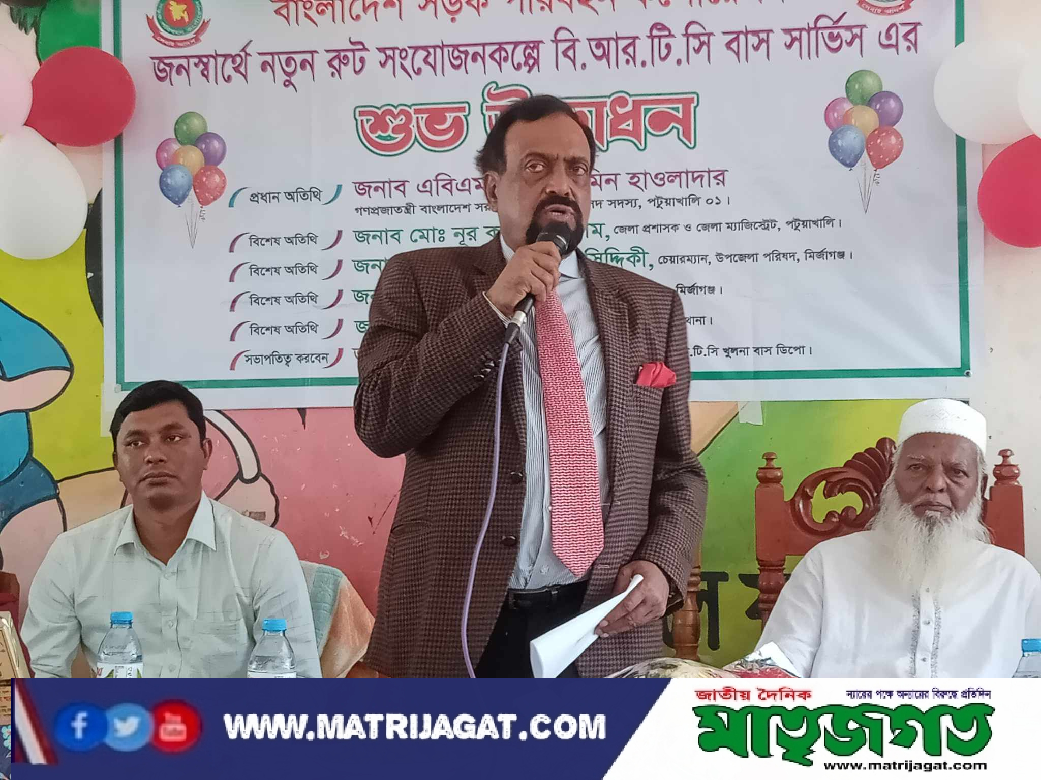 মোঃমনিরুল ইসলাম সিনিয়র স্টাফ রিপোর্টার: আমি পটুয়াখালী ১ আসন মনের মতো করে সাজাবো মির্জাগঞ্জ,দুমকি হবে মডেল উপজেলা। মির্জাগঞ্জ টু খুলনা রুটে বি. আর. টি. সি বাস এর শুভ উদ্বোধন কালে একথা বলেন পটুয়াখালী ১আসনের সংসদ সদস্য বর্ষীয়ান রাজনীতিবিদ জাতীয় নেতা এবিএম রুহুল আমীন হাওলাদার। পটুয়াখালী জেলার মির্জাগঞ্জ উপজেলার মনোহরখালী সাইক্লোন সেন্টার কাম স্কুল এর হলরুমে বাস উদ্বোধন অনুষ্ঠানের আয়োজন করা হয়।উক্ত অনুষ্ঠানে প্রধান অতিথি হিসেবে উপস্থিত ছিলেন পটুয়াখালী ১ আসনের সংসদ সদস্য এবি এম রুহুল আমীন হাওলাদার। বিশেষ অতিথি হিসেবে ছিলেন পটুয়াখালী জেলার অতিরিক্ত জেলা প্রশাসক (রেভিনিউ) মহোদয়, উপজেলা আওয়ামী লীগ এর সভাপতি মোঃ গাজী আতাহার উদ্দীন আহম্মেদ, সিনিয়র সহ সভাপতি ইসমাইল হোসেন মৃধা সাধারন সম্পাদক জষিম উদ্দিন জুয়েল বেপারী, দুমকী উপজেলা চেয়ারম্যান মোঃ হারুন অর রশীদ দুমকি উপজেলা আওয়ামী লীগের সাধারণ সম্পাদক মহোদয়, মির্জাগঞ্জ উপজেলা নির্বাহী অফিসার জনাবা সাইয়েমা হাসান,, সহকারী কমিশনার( ভূমি) মির্জাগঞ্জ থানার ওসি (তদন্ত) মোঃ হুমায়ন উপজেলা জাতীয় পার্টির সভাপতি অধ্যক্ষ আঃরহমান সাধারন সম্পাদক মোঃ রাছেল হাওলাদার,এবং উপজেলা প্রেস ক্লাব মির্জাগঞ্জ এর সম্মানিত সভাপতি মোঃ মনিরুল ইসলাম, উপজেলা প্রেসক্লাব মির্জাগঞ্জ এর সাধারন সম্পাদক রফিক জোমাদ্দার। উপজেলা আওয়ামী লীগ সভাপতি মোঃ গাজী আতাহার উদ্দীন আহম্মেদ প্রধান অতিথি কে সুবিদখালী পায়রাগঞ্জ রাস্তাটির বেহাল অবস্থা এ রাস্তাটি দ্রুত প্রয়োজন এবং ইউনিয়ন ছাএলীগ এর সভাপতি ইমরান বাহাদুর মির্জাগঞ্জ মাজার এর ভেরিবাদ রাস্তাটি যাতে হয় তার কাছে দাবি জানায়। প্রধান অতিথি তার বক্তব্যে বলেন সুবিদখালী পায়রাগঞ্জ রোড,মাজার এর ভেরিবাদ এ দুটো হবে বলে আশ্বাস দেন। এবং তিনি বলেন পটুয়াখালী ১ আসনকে সাজাবো মনের মতো করে আগামী পাচঁ বছর পর আপনারা আমাকে বলবেন উন্নয়নের কথা। এরপর তিনি বি.আর. টি.সি বাসে বিশেষ অতিথি এবং নেতা কর্মী ও সাংবাদিক দেরকে নিয়ে মির্জাগঞ্জ মাজার মোড় পর্যন্ত যাএা করেন। এরপর মির্জাগঞ্জ ইউনিয়ন দঃ শরীফ মাধ্যমিক বিদ্যালয়ের ক্রীড়া ও সাংস্কৃতিক অনুষ্ঠানের উদ্বোধন করেন। এখানে তিনি বলেন মির্জাগঞ্জ উপজেলায় বাসস্ট্যান্ড ও উপজেলা স্বাস্থ্য কমপ্লেক্সের উন্নয়ন করবেন। এরপর হযরত ইয়ার উদ্দিন খলিফা সাহেব (রঃ) এর মাজার জিয়ারত করেন।