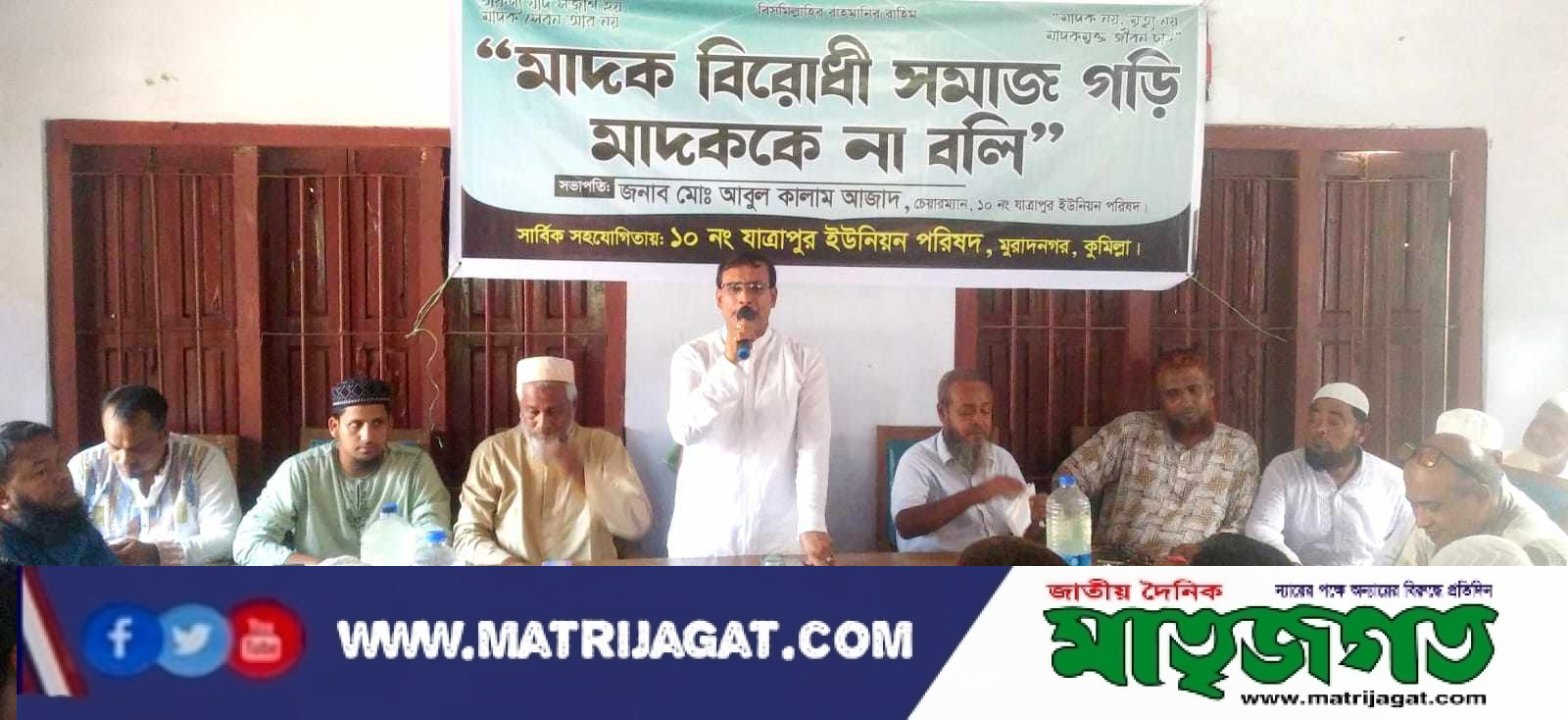 মোঃ ইউনুছ, মুরাদনগর (কুমিল্লা) জেলা প্রতিনিধিঃ মাদক এখন বাংলাদেশের জাতীয় জীবনের অন্যতম একটি মারাত্মক সমস্যা। মাদকাসক্ত সমাজ জাতির পঙ্গুত্ব বরণের অন্যতম কারণ হয়ে দাঁড়িয়েছে। বর্তমানে শহর ছাড়িয়ে এই মাদক পাড়াগাঁয়েও পৌঁছে গেছে। দেশের ৬৮ হাজার গ্রামের সব গ্রামেই পাওয়া যায় মাদকদ্রব্য। এমন একটি গ্রাম খুঁজে পাওয়া যাবে না যে, এই গ্রামে মাদকাসক্ত ব্যক্তি নেই। এসব মাদক সেবনকারী ব্যক্তিদের মধ্যে সবচেয়ে বেশি হল 'ইয়াবা' সেবনকারী। মাদক বিরোধী সমাজ গড়ি মাদককে না বলি এই শ্লোগানকে সামনে রেখে কুমিল্লার মুরাদনগর উপজেলার যাত্রাপুর ইউনিয়ন পরিষদ আয়োজিত পরিষদ হল রুমে এক আলোচনা সভা অনুষ্ঠিত হয়েছে।