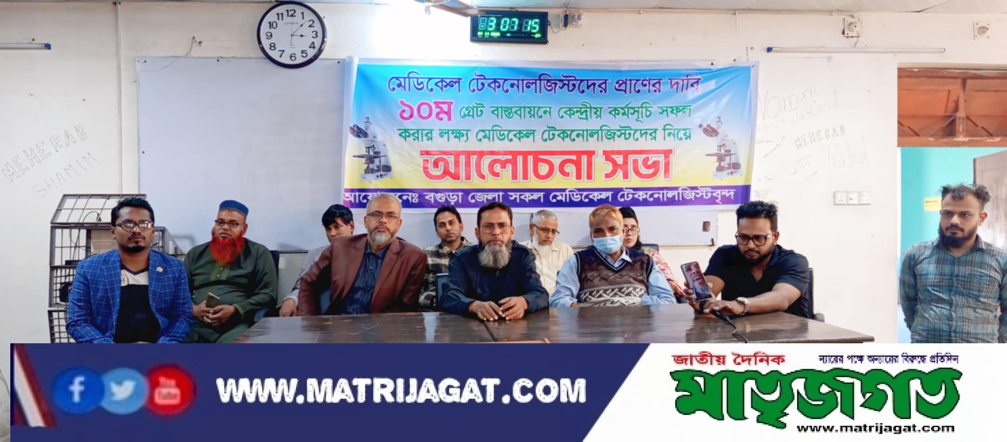 মেডিকেল টেকনোলজিস্টদের প্রাণের দাবি ১০ম গ্রেড বাস্তবায়ন : বগুড়ায় আলোচনা সভা অনুষ্ঠিত