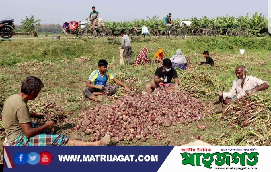 পেঁয়াজের বাজার দর কমে যাওয়ায় হতাশায় মেহেরপুরের পেঁয়াজ চাষিরা। একসময় পিয়াজের দাম আকাশচুম্বী থাকলেও সেই পেঁয়াজ এখন খুচরা বাজারে কেজি প্রতি ২৫-২৮ টাকা দরে বিক্রি হচ্ছে। ইন্ডিয়া থেকে এলসি’র মাধ্যমে পেঁয়াজ আসাতে দেশীয় তাহেরপুর বা পাবনা জাতের পেঁয়াজের দাম কম হওয়ায় ব্যাপক ক্ষতির মুখে পড়েছে এমনিই অভিযোগ করেছে পেঁয়াজ চাষী ও ব্যাবসায়ীরা। মেহেরপুর জেলার  ফতেপুর  গ্রামের বাবলু মিয়া  বলেন, ৩বিঘা পেঁয়াজ চাষ করতে যে পরিমানে খরচ হয়েছে, তা অর্ধেক দামও পাওয়া যাচ্ছে না। একই গ্রামের পেঁয়াজ চাষী সামাদ হোসেন বলেন, ইন্ডিয়া থেকে যে ভাবে এলসি’র মাধ্যমে পেঁয়াজ আসছে তাতে করে আমরা দেশীয় পেঁয়াজের দাম পাচ্ছি না। প্রতি কেজি পেঁয়াজ চাষ করতে আমাদের প্রায় ২৪ টাকা করে খরচ হয়েছে। সব খরচ বাদ দিয়ে আমরা প্রতি কেজি পেঁয়াজের দাম পাচ্ছি ১৫/১৮ টাকা। যা খরচ করেছি তা প্রায় অর্ধেক আমাদের লস হচ্ছে। এদিকে পেঁয়াজের বাজার দর নিয়ে বড়বাজার তহ-বাজার ব্যাবসায়ী সমিতির সাধারণ সম্পাদক আব্দুস সামাদ বলেন, আমাদের মেহেরপুর অঞ্চল কৃষি ভিত্তিক, এবার চাষীদের ব্যাপক পেঁয়াজ ফলন হয়েছে, দাম একটু কম হলেও ইন্ডিয়া থেকে এলসি’র মাধ্যমে পেঁয়াজ আসাতে চাষীরা ব্যাপকভাবে ক্ষতিগ্রস্থ হচ্ছে। কয়েকদিন আগে আমরা মেহেরপুর থেকে বিভিন্ন অঞ্চলে ১০ /১১টি গাড়ী লোড দিয়েছি। বর্তমানে আলগামন, নছিমন ও মিনি ট্রাক মিলে ৫-৭টি গাড়ী লোড হচ্ছে। ইন্ডিয়া থেকে এলসি পেঁয়াজ আসা যদি সরকার বন্ধ করার পদক্ষেপ নেই তাহলে চাষী বাঁচবে এবং পেঁয়াজের মূল্য বৃদ্ধি পবে। অন্তত চাষীদের ক্ষতির মুখে পড়তে হবে না। অপরদিকে বড়বাজার তহ-বাজারের পাইকারী বিক্রেতা সিরাজ বাণিজ্যালয়ের সত্বাধিকারী  বলেন- আমরা চাষীদের কাছ থেকে পেঁয়াজ কিনছি প্রতি কেজি ১৩/১৫ টাকা, বিক্রয় করছি ১৮/২০ টাকায়। কেননা ইন্ডিয়া থেকে এলসি’র মাধ্যমে পেঁয়াজ আসাতে বর্তমানে বাজার দর কম। চাষীদের ১ বিঘা পেঁয়াজ চাষ করতে যে পরিমাণে খরচ হয়েছে তাতে চাষীদের খরচের টাকা থেকে অর্ধেক টাকা পাবে কিনা তা সন্দেহ। এর থেকে পরিত্রানের একমাত্র উপায় সরকারকে ইন্ডিয়া থেকে এলসি পেঁয়াজ আসা বন্ধ করতে হবে। তা নাহলে পেঁয়াজ চাষীরা ব্যাপক ক্ষতির মুখে পড়বে।