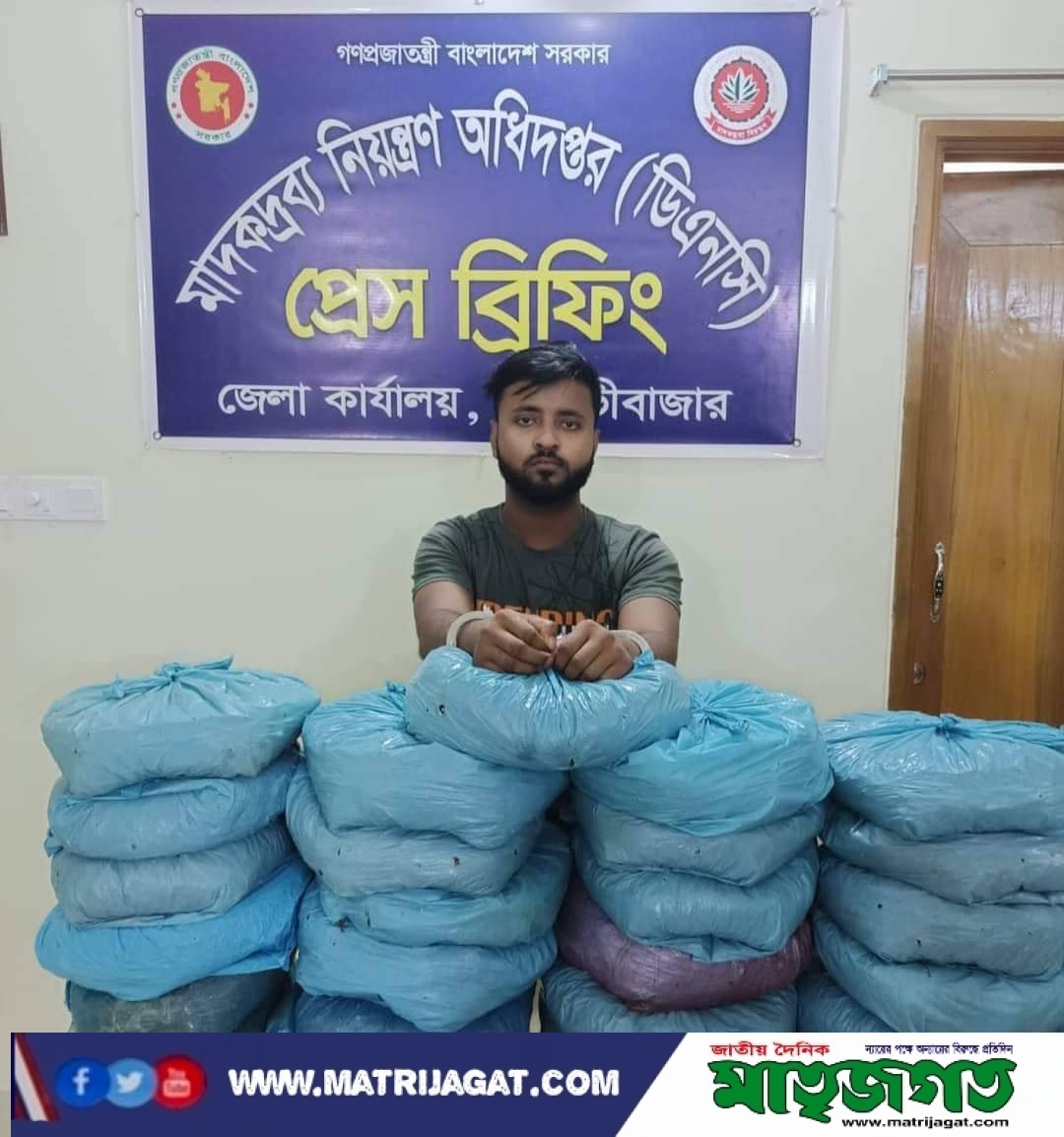 মৌলভীবাজারের শ্রীমঙ্গলে এক যুবক ২৫ কেজি গাঁজাসহ আটক