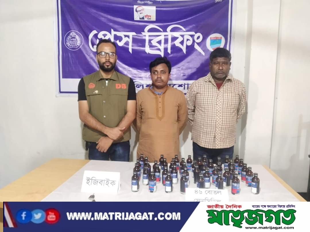 যশোর ডিবি পুলিশের অভিযানে ফেনসিডিলসহ ২ মাদক ব্যবসায়ী গ্রেফতার, ১টি ইজিবাইক উদ্ধার!