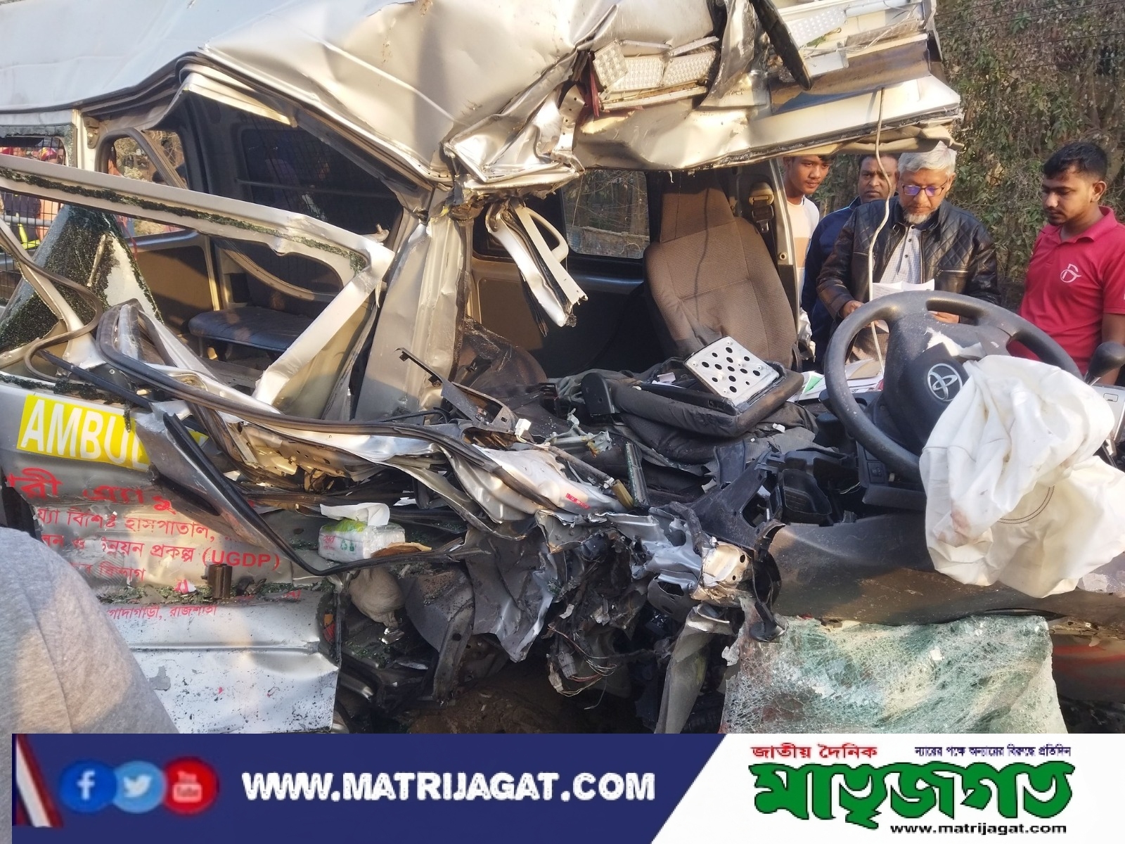 গোদাগাড়ী (রাজশাহী) প্রতিনিধিঃ রাজশাহীর গোদাগাড়ী উপজেলার রাজাবাড়ী এলাকায় একটি মর্মান্তিক সড়ক দুর্ঘটনা ঘটেছে। সোমবার ভোর ৪টার দিকে টমেটোবোঝাই ট্রাকের সঙ্গে মুখোমুখি সংঘর্ষে অ্যাম্বুলেন্সের তিন আরোহী নিহত হয়েছেন। নিহতদের মধ্যে রয়েছেন অ্যাম্বুলেন্সের রোগী সুন্দরী পাহান (৬৫), তাঁর মেয়ে আদুরী মুরালি এবং অ্যাম্বুলেন্সের চালক জাফর ইকবাল।