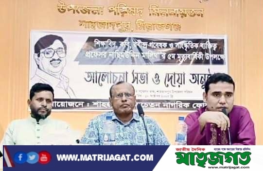 সভায় বক্তারা বলেন, “প্রফেসর নাছিমউদ্দিন মালিথা ছিলেন রবীন্দ্র বিশ্ববিদ্যালয়, শাহজাদপুর-এর অন্যতম স্বপ্নদ্রষ্টা। বাংলা সাহিত্য ও সংস্কৃতির মর্মবস্তু তিনি নিজের জীবনের প্রতিটি পরতে বুনে গিয়েছিলেন। শিক্ষক, কবি, গবেষক, সমাজসেবক— এক কথায় তিনি ছিলেন মানুষ গড়ার কারিগর।”
