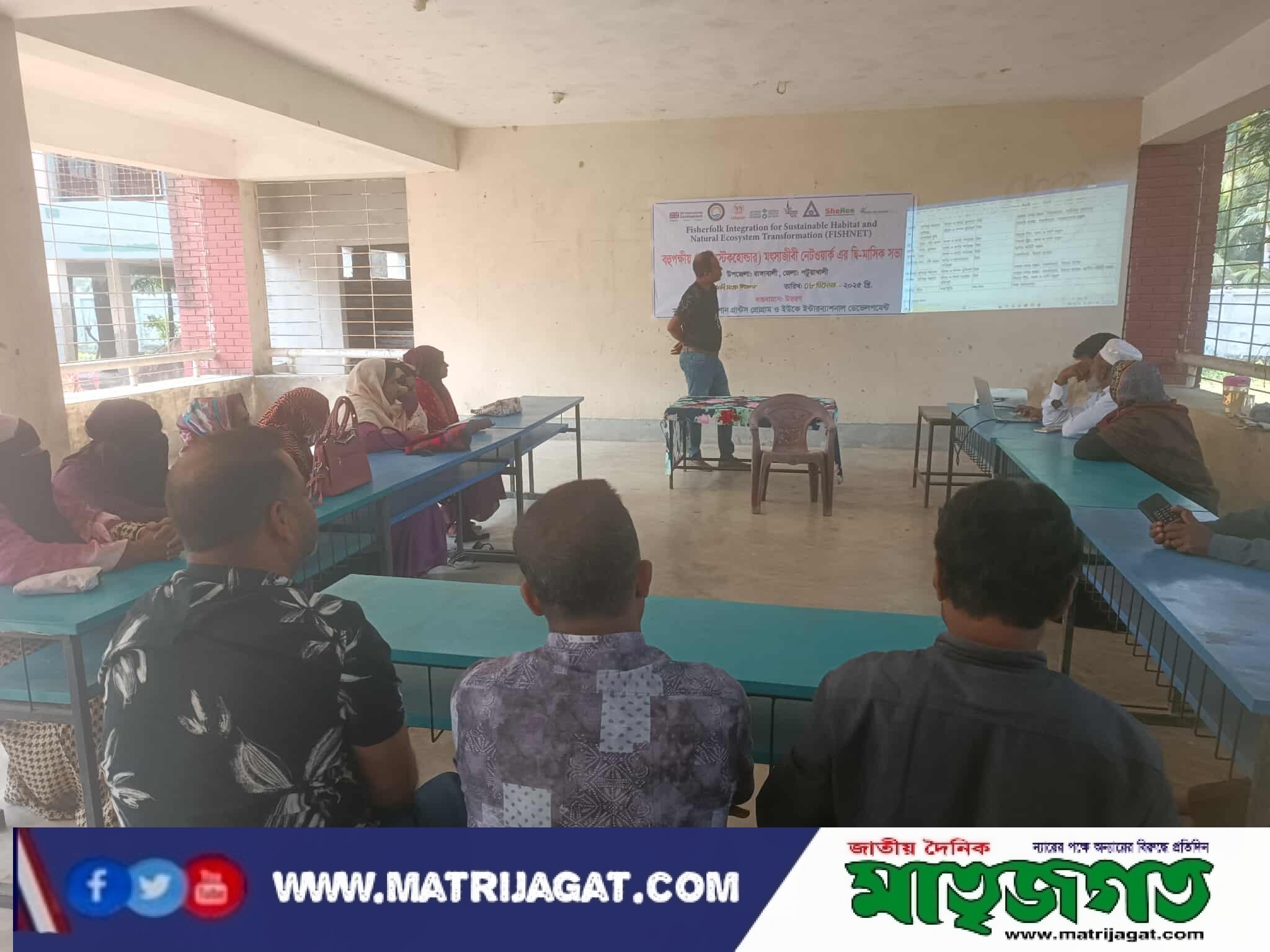 বেসরকারী উন্নয়ন সংস্থা উত্তরণ এর উদ্যোগে ফিশনেট প্রকল্পের আওতায় পটুয়াখালী জেলার রাঙ্গাবালী উপজেলায় বহুপক্ষীয় (মাল্টিস্টেকহোল্ডার) মৎস্যজীবী নেটওয়ার্ক এর দ্বিমাসিক সভা অনুষ্ঠিত হয়েছে।ফিশনেট প্রল্পের আওতায় বেসরকারী উন্নয়ন সংস্থা ‘উত্তরন’ এর বাস্তবায়নে ওসান গ্রান্টস প্রোগ্রাম এবং ইউকে ইন্টারন্যাশনাল ডেভেলপমেন্টের আর্থিক সহেযোগীতায় আজ ০৮ ডিসেম্বর ২০২৫ রোজ সোমবার সকাল ১০ টায় ১৬ জন সদস্য নিয়ে বহুপক্ষীয় (মাল্টি স্টেকহোল্ডার) মৎস্যজীবী নেটওয়ার্ক সভা অনুষ্ঠিত হয়।