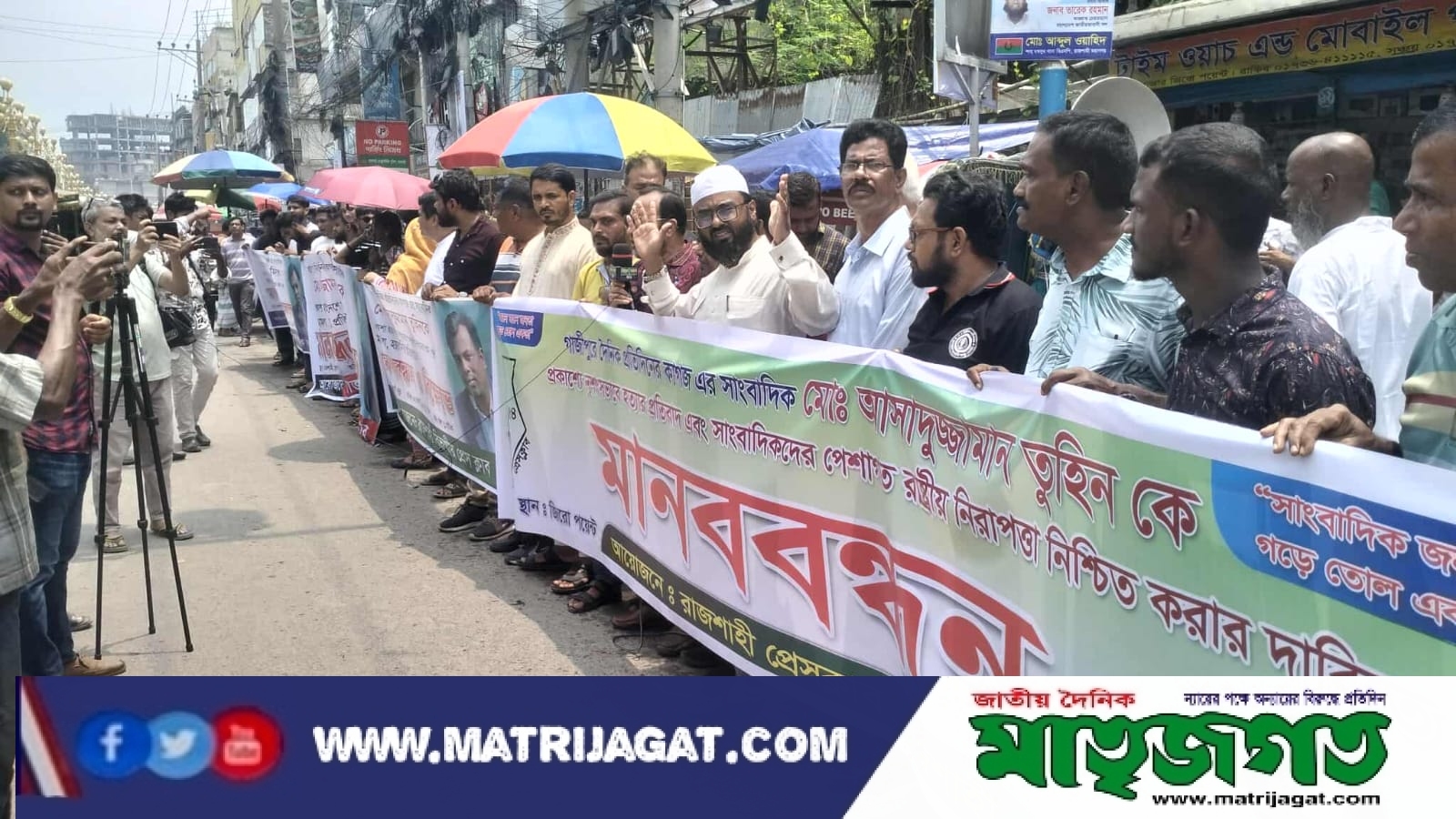 রাজশাহীতে সাংবাদিক হত্যার প্রতিবাদে বিক্ষোভ ও মানববন্ধন অনুষ্ঠিত