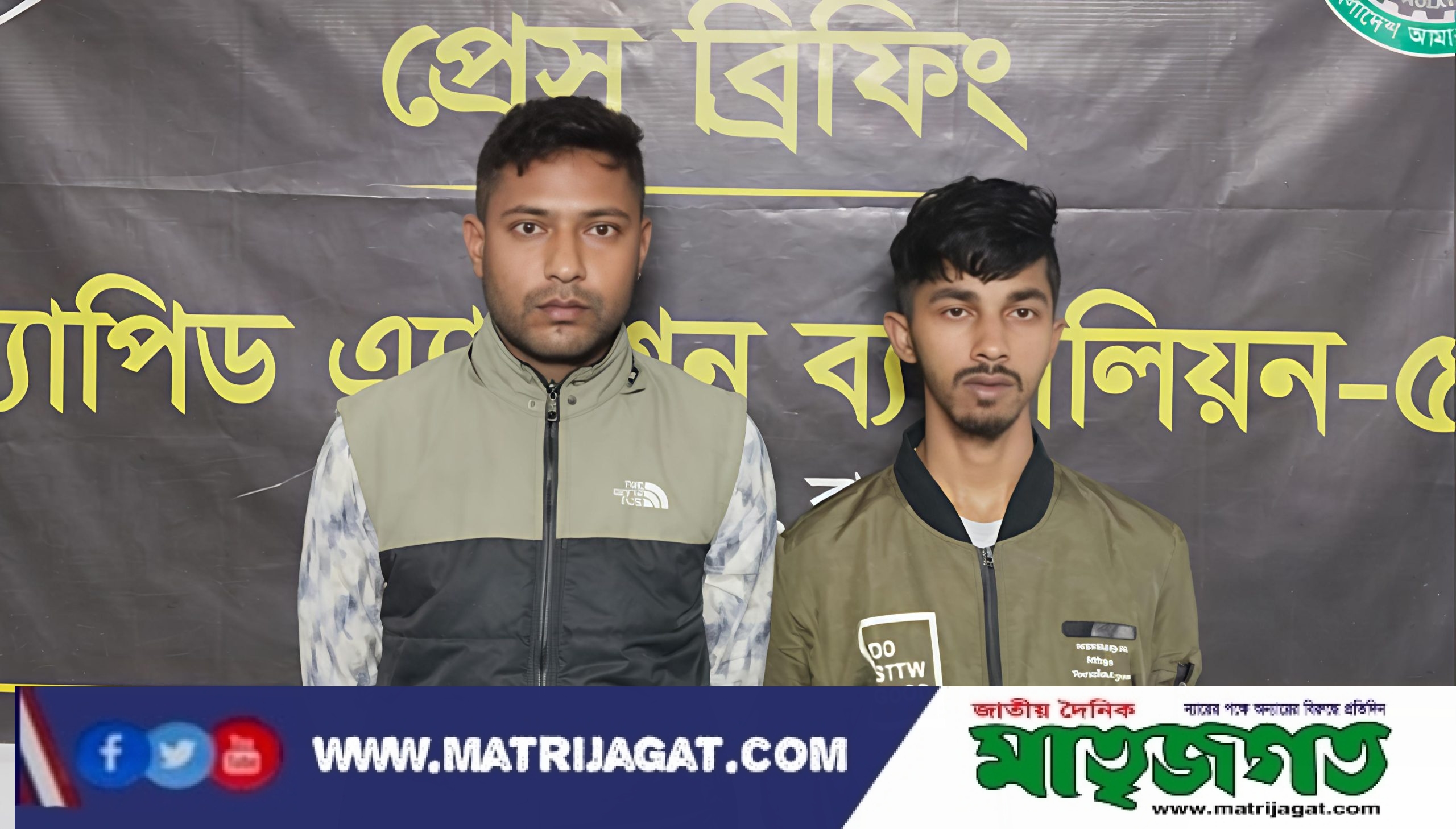 আজ বুধবার সকালে র্যাব-৫-এর পক্ষ থেকে এক সংবাদ বিজ্ঞপ্তিতে এ তথ্য জানানো হয়। আটককৃতরা হলেন রাজশাহীর গোদাগাড়ী উপজেলার পরমানন্দপুর গ্রামের মো. সিহাব (২৬) ও টাঙ্গাইলের দেলদুয়ার উপজেলার পাত্রাই গ্রামের আবুল কাশেম (১৯)। র্যাব জানায়, কাশেম হেরোইনের চালানটি নিতে টাঙ্গাইল থেকে রাজশাহী এসেছিলেন, আর সিহাব চালানটি হস্তান্তরের জন্য গোদাগাড়ী থেকে শহরে আসেন।