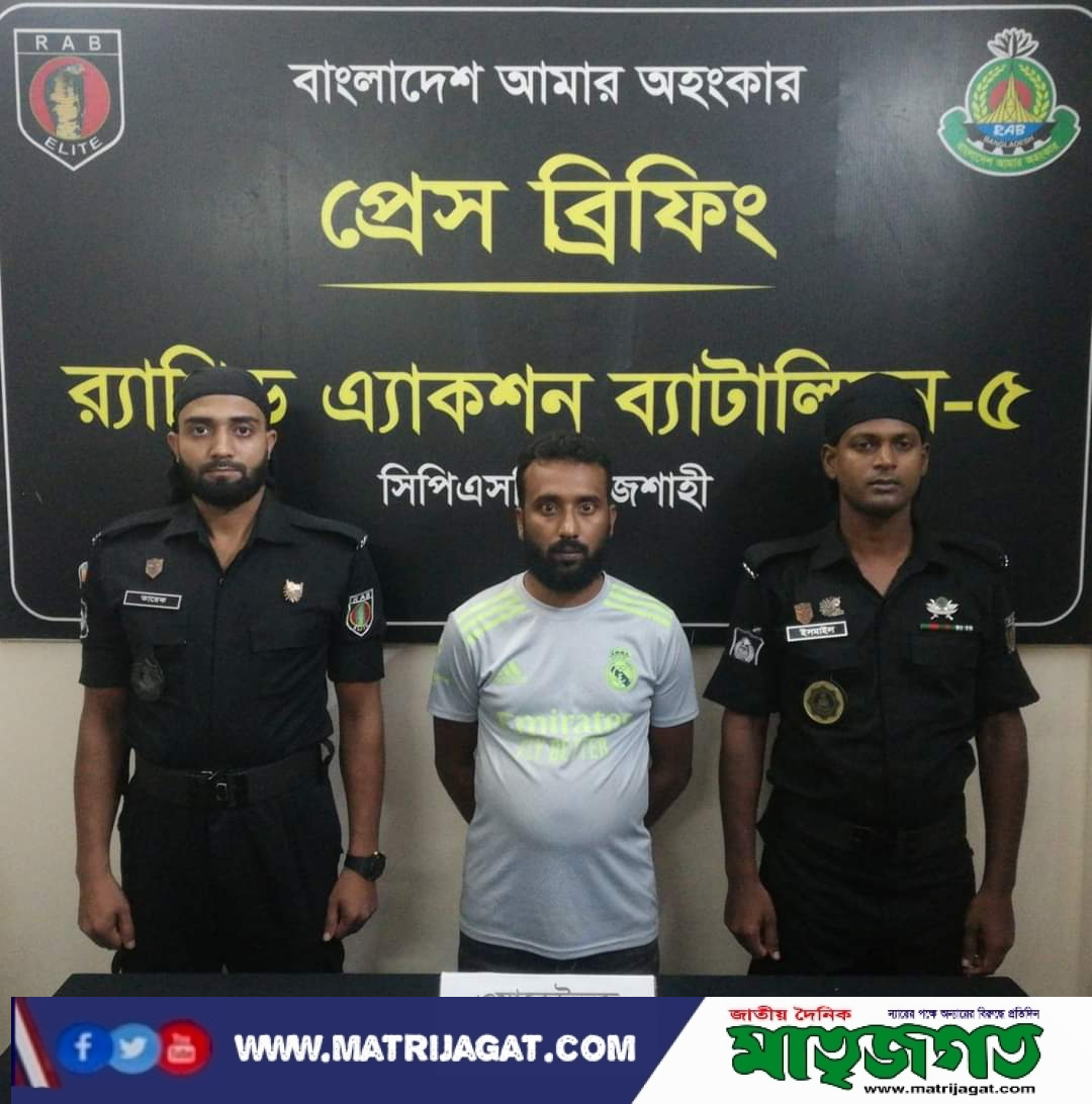 এরই ধারাবাহিকতায় গোয়েন্দা তথ্যের ভিত্তিতে সিপিএসসি,র্যাব-৫ এর একটি দল অভিযান পরিচালনা করে রাজশাহী জেলার গোদাগাড়ী থানাধীন মহিষালবাড়ী এলাকা হতে আরিফকে গ্রেফতার করা হয়।