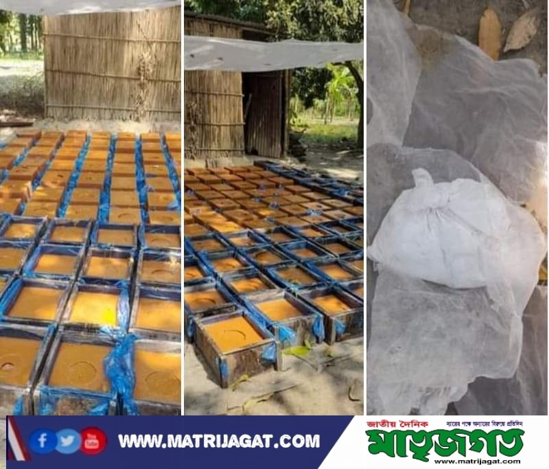 মারুফ আহমেদ রাজশাহীঃ আজ ১৬-০৩-২০২২ তারিখ দুপুর অনুমান ১.৩০ টার সময় চারঘাট থানার একটি পুলিশ টিম গোপন সংবাদের ভিত্তিতে চারঘাট থানাধীন ভায়া লক্ষীপুর ইউনিয়নের জোতরঘুপুর এলাকায় একটি ভেজাল খেজুরের গুড় তৈরির কারখানায় বিশেষ অভিযান পরিচালনা করে ১৫০০ কেজি ভেজাল খেজুরের গুড়, ভেজাল গুড় তৈরির বিভিন্ন উপকরণ সামগ্রী ( চুন, হাইড্রোজ, ফিটকিরি ও বিভিন্ন ক্ষতিকর রাসায়নিক উপাদান) জব্দ করে। পুলিশের উপস্থিতি টের পেয়ে অপরাধীরা পালিয়ে যায়। ঘটনার সাথে জড়িতদের বিরুদ্ধে চারঘাট থানায় আইনগত ব্যবস্থা গ্রহন প্রক্রিয়াধীন রয়েছে ।