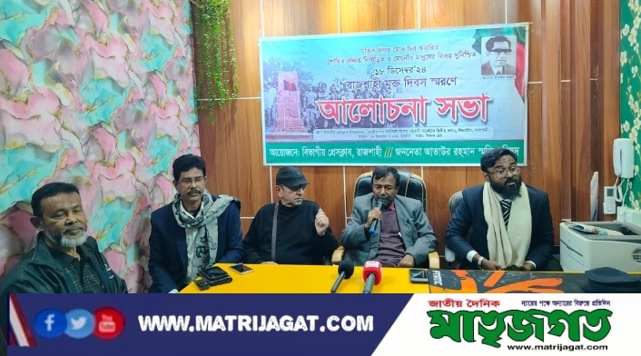 বিভাগীয় প্রেসক্লাব রাজশাহীর সাধারণ সম্পাদক এসএম আব্দুল মুগনি নিরোর সঞ্চালনায় বক্তব্য রাখেন জননেতা আতাউর রহমান স্মৃতি পরিষদের সাধারণ সম্পাদক অ্যাড. মো. আসলাম উদ দৌলা, জননেতা আতাউর রহমান স্মৃতি পরিষদের উপদেষ্টা মাসুদ রানা সরকার, সহ-সভাপতি সালাউদ্দিন মিন্টু ও মুক্তিযুদ্ধের তথ্য সংগ্রাহক ওয়ালিউর রহমান বাবু।