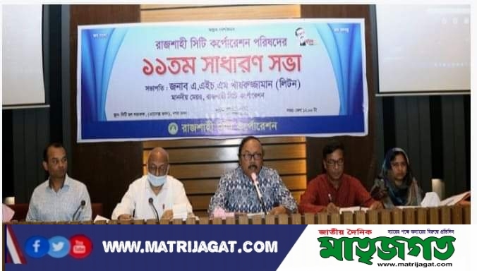 রাজশাহী সিটি কর্পোরেশনের বর্তমান পরিষদের ১১তম সাধারণ সভা অনুষ্ঠিত হয়েছে। বৃহস্পতিবার দুপুর ১টা থেকে বিকেল সাড়ে ৫টা পর্যন্ত নগর ভবনের সিটি হল সভাকক্ষে এ সভা অনুষ্ঠিত হয়। সভায় সভাপতিত্ব করেন রাজশাহী সিটি কর্পোরেশনের মেয়র এ.এইচ.এম খায়রুজ্জামান লিটন।
