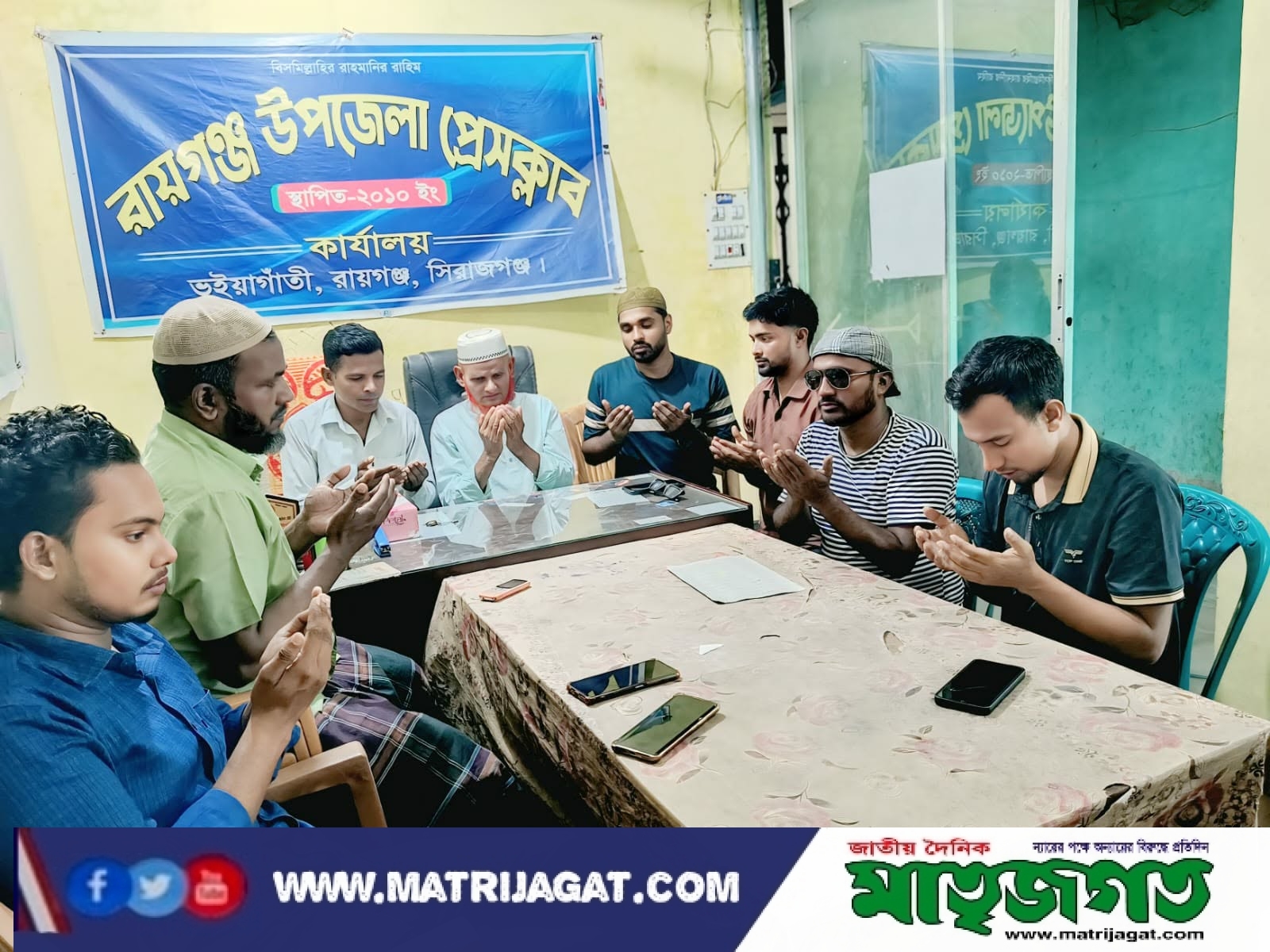 ২২ শে অক্টোবর বুধবার বিকাল ৫ টায় উপজেলা প্রেসক্লাব কার্যালয়ে সাংবাদিকদের উপস্থিতিতে দোয়া মাহফিলে বিশেষ মোনাজাত করেন রায়গঞ্জ উপজেলা প্রেসক্লাবের সাধারণ সম্পাদক আলহাজ্ব এস এম নজরুল ইসলাম।