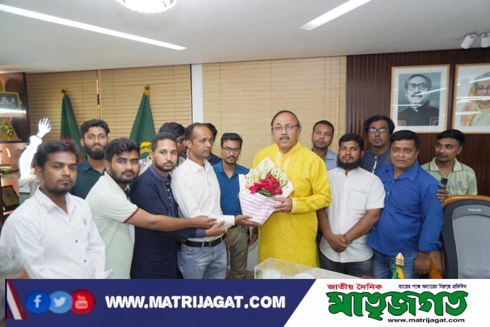 মোঃ রাজন ইসলাম রাজশাহী : ০৬ মে ২০২৪ ইং রোজ সোমবার বাংলাদেশ আওয়ামী লীগের সভাপতিমণ্ডলীর সদস্য ও রাজশাহী সিটি কর্পোরেশনের মাননীয় মেয়র এএইচএম খায়রুজ্জামান লিটনের সাথে সৌজন্য সাক্ষাৎ করেছেন রাজশাহী অনলাইন সাংবাদিক ফোরাম (আরওজেএফ) রাজশাহী শাখার দ্বি-বার্ষিক নির্বাচনে নবনির্বাচিত নেতৃবৃন্দ। সোমবার (০৬ মে)য ৪ টায় নগর ভবনের মেয়রের দপ্তরকক্ষে সাক্ষাৎকালে রাসিক মেয়রকে ফুলেল শুভেচ্ছা জানান তারা। এ সময় রাসিক মেয়র মহোদয় নবনির্বাচিত নেতৃবৃন্দকে শুভেচ্ছা ও অভিনন্দন জানান।