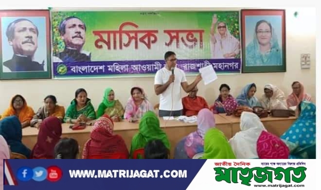 বাংলাদেশ মহিলা আওয়ামী লীগ, রাজশাহী মহানগরের মাসিক সভা অনুষ্ঠিত হয়েছে। বুধবার বেলা সাড়ে ৩টায় কুমারপাড়াস্থ দলীয় কার্যালয়ে এ সভা অনুষ্ঠিত হয়।