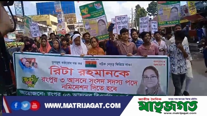 রিটা রহমানকে বিএনপির নমিনেশনের দাবিতে রংপুরে বিক্ষোভ