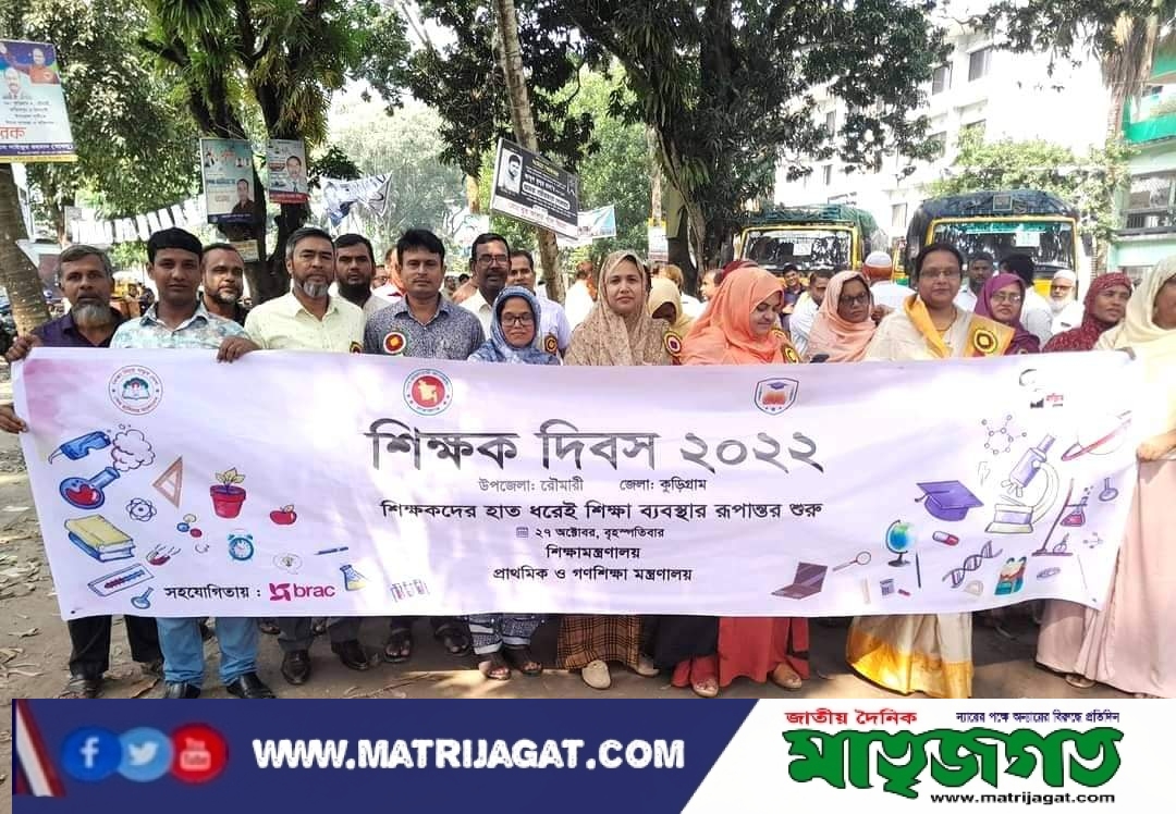 শাহ মোঃ আব্দুল মোমেন,রৌমারী (কুড়িগ্রাম)প্রতিনিধি: "শিক্ষকদের হাত ধরেই, শিক্ষার ব্যবস্থা রুপান্তর শুরু’ এই প্রতিপাদ্য বিষয়কে সামনে রেখে সারা দেশের ন্যায় কুড়িগ্রামের রৌমারী উপজেলায় শিক্ষক দিবস পালিত হয়েছে। বৃহস্পতিবার সকাল ১১ টার দিকে উপজেলা পরিষদ চত্বর থেকে একটি বর্ণাঢ্য র্যালি বের হয়ে বাজারের প্রধান প্রধান সড়ক প্রদক্ষিণ করে একই স্থানে এসে শেষ হয়।