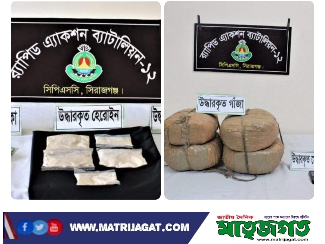 জেলা ব্যুরো সিরাজগঞ্জঃ সিরাজগঞ্জের রায়গঞ্জ তাড়াশ ও সলঙ্গায় পৃথক মাদক বিরোধী অভিযানে ৩৫ কেজী ৮শত গ্রাম গাজা, ১৬১ গ্রাম হেরোইন সহ ৬ মাদক ব্যবসায়ীকে আটক করে মাকদ বাহী ১টি ট্রাক জব্দ করেছে র্যাব ১২‘র অভিযানিক দলের সদস্যরা।