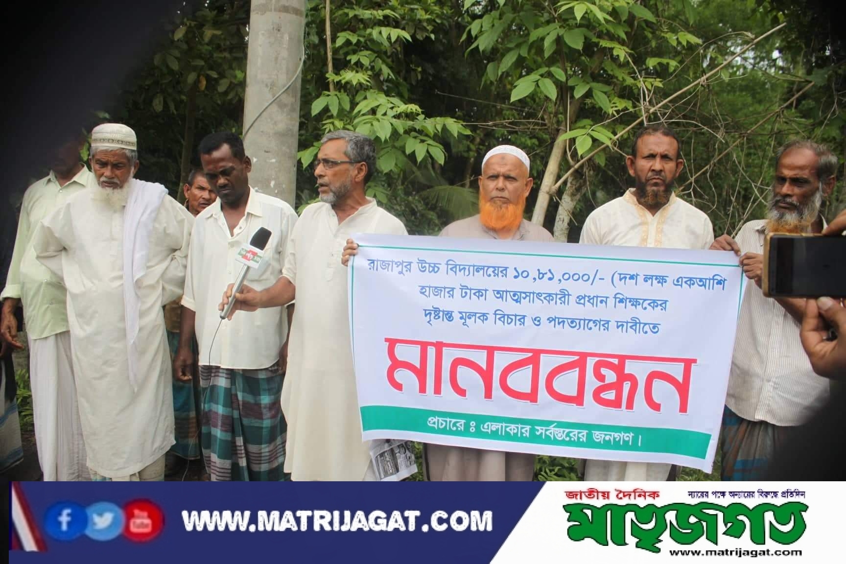 লক্ষ্মীপুর জেলা চন্দ্রগঞ্জ থানা আওতাধীন ১৩ নং দিঘলী ইউনিয়ন ৩নং ওয়ার্ড রাজাপুর উচ্চ বিদ্যালয়ের প্রধান শিক্ষকের বিরুদ্ধে দশ লক্ষ বিশ হাজার টাকার দুর্নীতির অভিযোগ করে ম্যনেজিং কমিটি।এতে করে এলাকার প্রতিষ্ঠানের স্বার্থে এলাকার জনগণ মানবন্ধন করে।