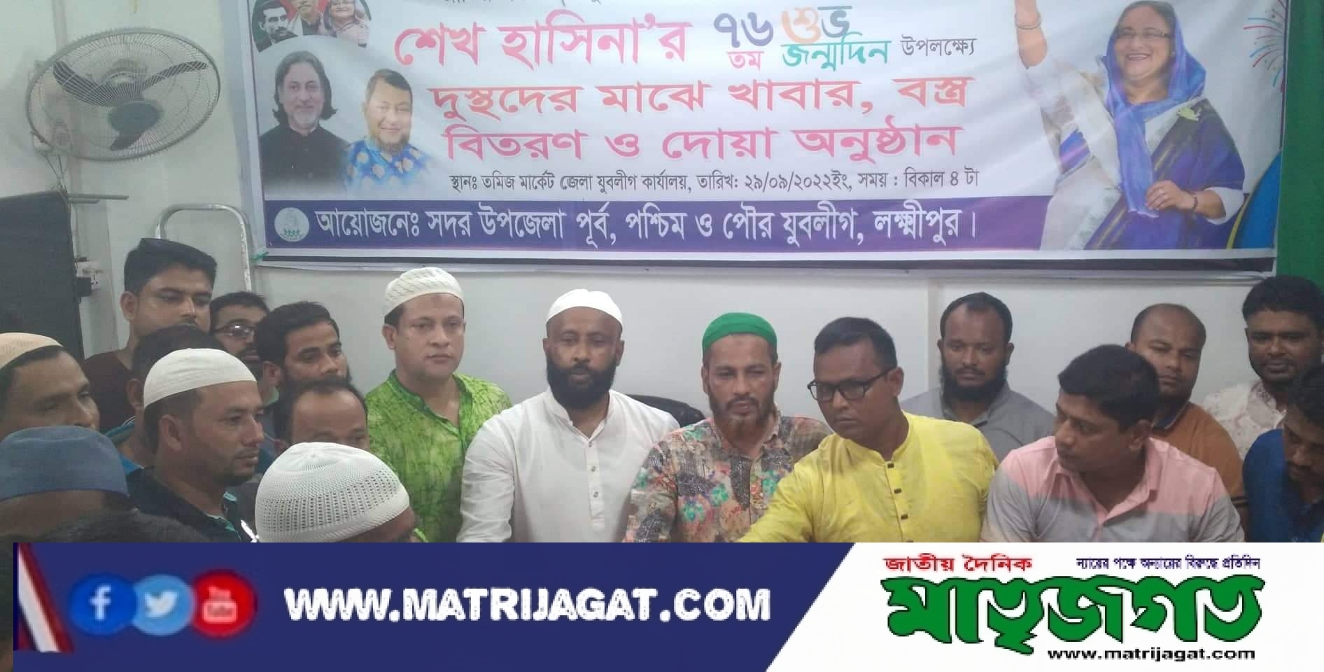 লক্ষ্মীপুরে শেখ হাসিনা জন্মদিন উপলক্ষে সাবেক জেলা যুবলীগের সভাপতি এ কে এম সালাউদ্দিন টিপুর পক্ষ থেকে সদর পূর্ব-পশ্চিম ও পৌর যুবলীগ উদ্ব্যেগে খাবার,বস্ত্র বিতরন ও দোয়া আয়োজন করা হয়।