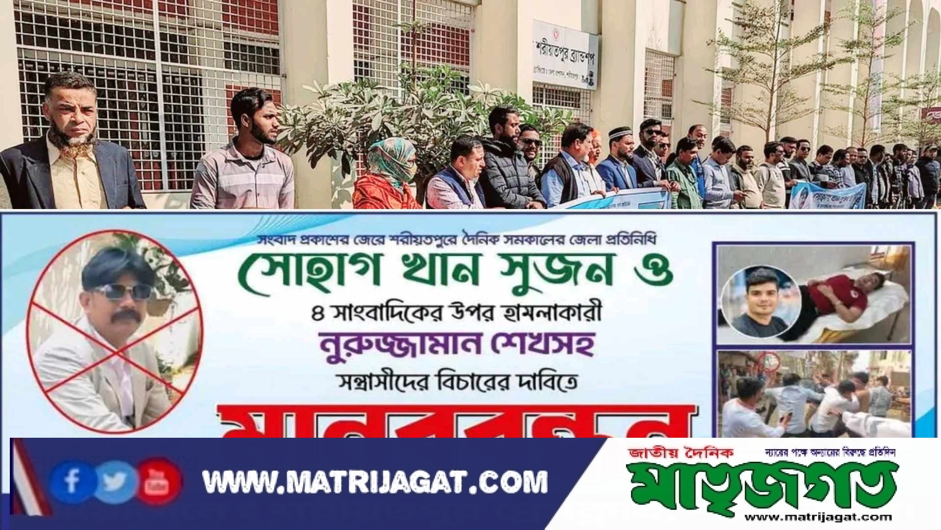 শরীয়তপুর জেলাপ্রতিনিধিঃ শরীয়তপুরে গণমাধ্যম কর্মীদের ওপর হাতুড়ি ও দেশীয় অস্ত্র দিয়ে হামলার ঘটনায় অভিযুক্তদের বিচারের দাবিতে মানববন্ধন ও বিক্ষোভ করেছেন সাংবাদিকরা।