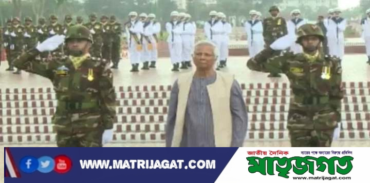 এর আগে, সাভারে জাতীয় স্মৃতিসৌধে মহান মুক্তিযুদ্ধে শহীদদের প্রতি শ্রদ্ধা জানান অন্তর্বর্তী সরকারের প্রধান ড. মুহাম্মদ ইউনূসসহ অন্য উপদেষ্টারা। শুক্রবার সকাল ৯টা ৫৫ মিনিটের দিকে তারা শ্রদ্ধা নিবেদন করেন।