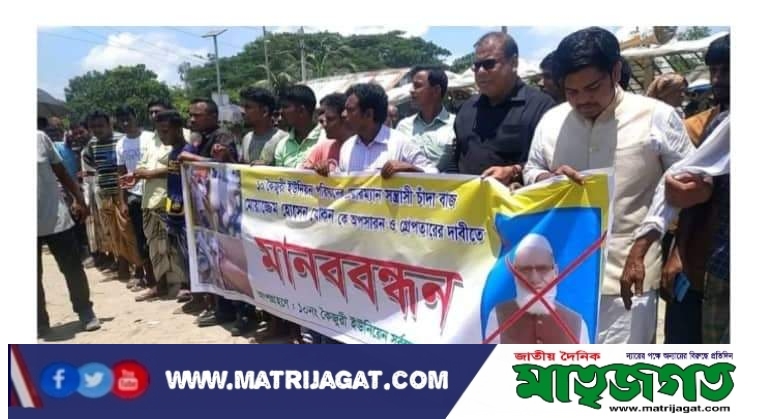 সিরাজগঞ্জের শাহজাদপুরে ইউপি চেয়ারম্যান খোখন মাস্টারের সন্ত্রাসী বাহিনী কর্তৃক কৈজুরী স্কুল এন্ড কলেজের অধ্যক্ষ এ্যাডভোকেট আব্দুল খালেককে হামলা ও মারপিট করে আহত করার প্রতিবাদে শনিবার সকালে বিক্ষোভ,প্রতিবাদ সভা ও মানববন্ধন করেছে এলাকাবাসী।