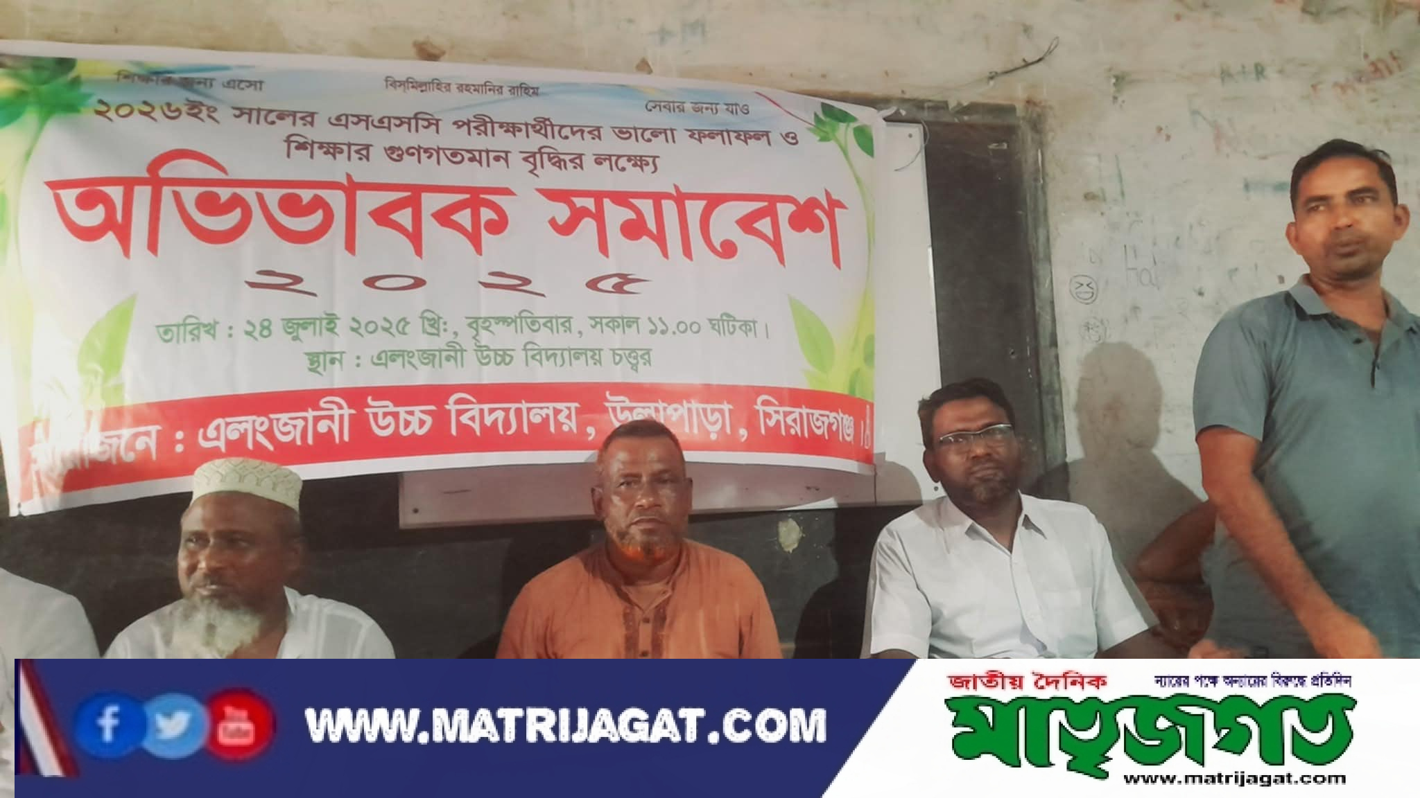 সিরাজগঞ্জ জেলার উল্লাপাড়া উপজেলার মোহনপুর ইউনিয়নের প্রত্যন্ত অঞ্চলের একমাত্র শিক্ষা প্রতিষ্ঠান এলংজানী উচ্চ বিদ্যালয়ে ২৪ জুলাই রোজ বৃহস্পতিবার ১১ ঘটিকার সময় অনুষ্ঠিত হয়েছে অভিভাবক সমাবেশ ২০২৫।