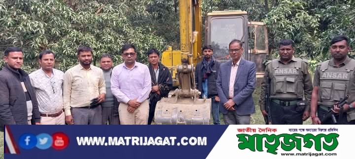 শিবগঞ্জে অবৈধভাবে মাটি কাটার দায়ে এক্সক্যাভেটার মেশিন আটক।
