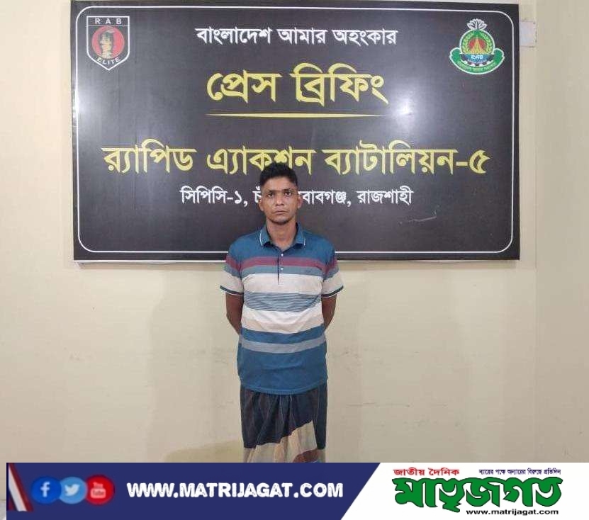 শিবগঞ্জ (চাঁপাইনবাবগঞ্জ) প্রতিনিধি: চাঁপাইনবাবগঞ্জ শিবগঞ্জে নিজ বাড়ীর গোয়াল ঘরে লুকিয়ে রাখা একটি বিদেশী পিস্তল,একটি ম্যাগজিন ও দুই রাউন্ড গুলি উদ্ধার করেছে র্যাব। এসময় অস্ত্র ব্যবসায়ী মো.পলাশ (২৮) নামে এক যুবককে আটক করেছে চাঁপাইনবাবগঞ্জ র্যাব ক্যাম্পের সদস্যরা। আটক মো.পলাশ শিবগঞ্জ উপজেলার দাইপুখুরিয়া গ্রামের দৌলতবাড়ি গ্রামের মো.শফিকুল ইসলামের ছেলে। আজ শনিবার বিকেল তিনটার দিকে অস্ত্র ও গুলিসহ পলাশ কে আটক করা হয়। পরে সন্ধ্যায় র্যাবের পাঠানো প্রেস বিজ্ঞপ্তিতে এ তথ্য নিশ্চিত করা হয়।চাঁপাইনবাবগঞ্জ র্যাব ক্যাম্পের কোম্পানী অধিনায়ক মেজর মারুফুল ইসলাম বলেন,সীমান্তবর্তী এলাকায় পলাশের বাড়ী হওয়ায় বিভিন্ন সময়ে মাদক ও অস্ত্র সংগ্রহ করে বিভিন্ন স্থানে বিক্রি করতো। এনিয়ে এলাকার ভূক্তভোগী লোকজন তাঁর বিরুদ্ধে র্যাবের কাছে অভিযোগ দিলে র্যাব ছায়া তদন্ত চালায়। এরই একপর্যায়ে র্যাবের একটি আভিযানিক দল গোপন সংবাদের ভিত্তিতে আটক পলাশের নিজস্ব গোয়াল ঘরের মেঝেতে মাটির নিচে বিশেষ কায়দায় লুকায়িত অবস্থায় একটি বিদেশী পিস্তল,একটি ম্যাগজিন ও দুই রাউন্ড গুলি উদ্ধার করা হয়। পরে তাকে শিবগঞ্জ থানায় সোর্পদ করা হয়। শিবগঞ্জ থানার ভারপ্রাপ্ত কর্মকর্তা (ওসি) চৌধুরি জোবায়ের আহমেদ বলেন,র্যাবের দায়ের করা মামলায় পলাশ কে গ্রেপ্তার দেখিয়ে রোববার সকালে আদালতে পাঠানো হবে।