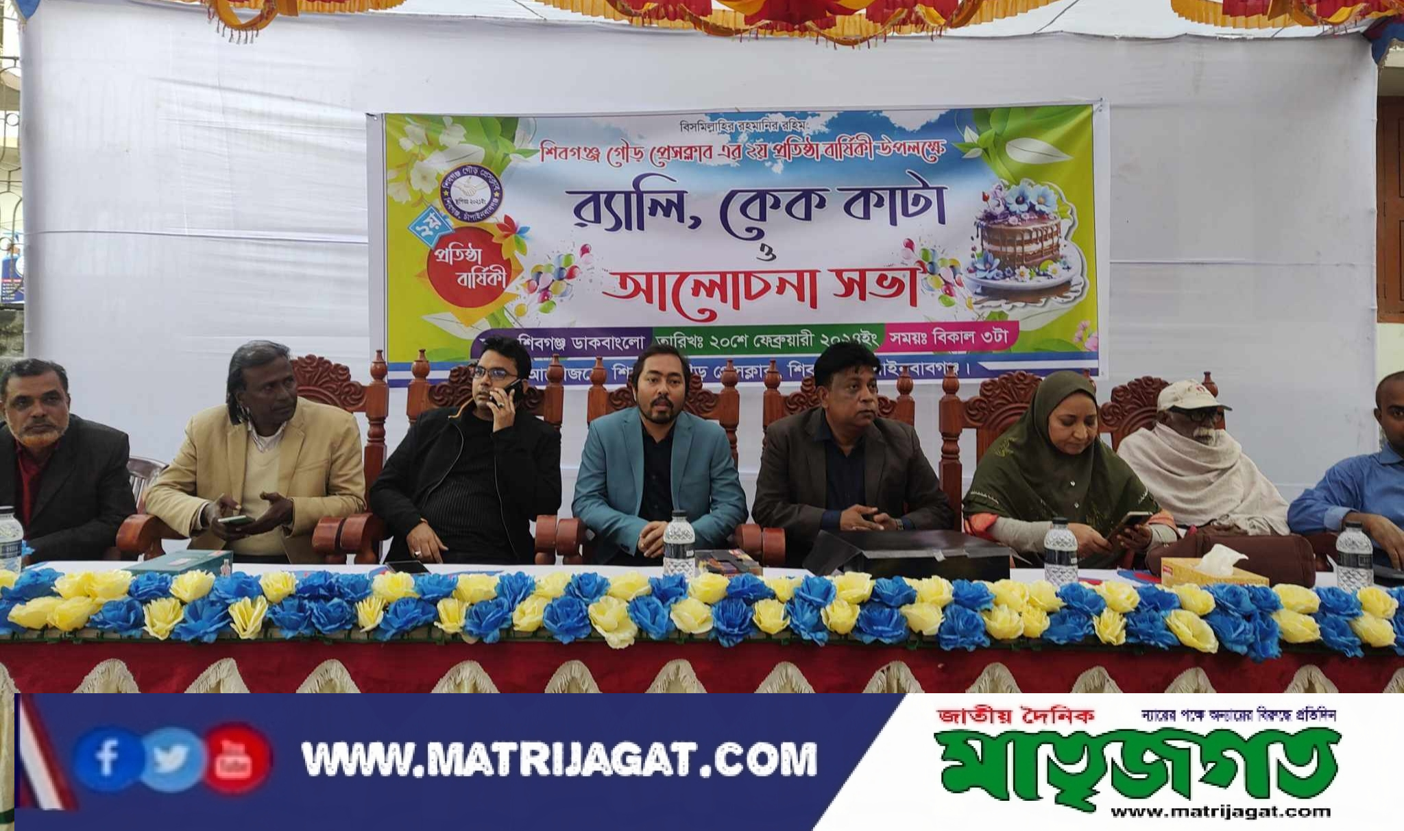 মোহাঃ বাবুল হোসেন চাঁপাইনবাবগঞ্জ জেলা ব্যুরো প্রধান: শিবগঞ্জ গৌড় প্রেসক্লাবের দ্বিতীয় প্রতিষ্ঠা বার্ষকী পালিত হয়েছে। দিবসটি পালন উপলক্ষে মঙ্গলবার বিকাল ৩ টায় উপজেলা ডাকবাংলা চত্বর থেকে একটি আনন্দ র্যালি বের করা হয়। র্যালিটি শিবগঞ্জ উপজেলা বাজার প্রধান প্রধান সড়ক প্রদক্ষিন শেষে উপজেলা ডাকবাংলো চত্বরে এসে শেষ হয়। সেখানে কেক কাটা ও আলোচনা সভা অনুষ্ঠিত হয়। শিবগঞ্জ গৌড় প্রেসক্লাবের সভাপতি মাইনুল ইসলাম লাল্টু সভাপতিত্বে সাধারণ সম্পাদক শামসুন্নাহার সোহানার সঞ্চালনায় প্রধান অতিথি হিসেবে উপস্থিত ছিলেন শিবগঞ্জ পৌর মেয়র সৈয়দ মনিরুল ইসলাম। বিশেষ অতিথি হিসাবে উপস্থিত ছিলেন উপজেলা মহিলা ভাইস চেয়ারম্যান শিউলি বেগম, থানার অফিসার ইনচার্জ (ওসি) মোঃ সাজ্জাদ হোসেন, নবজাতক ও শিশু বিশেষাজ্ঞ ডা:মাহফুজ রায়হান,উপজেলা প্রকল্প বাস্তবায়ন অফিসার আরিফুল ইসলাম, উপজেলা সমাজ সেবা অফিসার কাঞ্চন কুমার দাস, উপজেলা আওয়ামী লীগের যুগ্ম আহ্বায়ক তোহিদুল আলম টিয়া, এসএটিভির জেলা প্রতিনিধি আম উদ্যোক্তা আহসান হাবিব, দৈনিক ইত্তেফাকের জেলা প্রতিনিধি বীর মুক্তিযোদ্ধা তসলিম উদ্দীন, শিবগঞ্জ প্রতিনিধি সফিকুল ইসলাম, উপজেলা প্রেসক্লাবের সাধারণ সম্পাদক নাদিম হোসেনসহ বিভিন্ন গণমাধ্যমের কর্মরত স্থানীয় সাংবাদিকবৃন্দ ও শিবগঞ্জ গৌড় প্রেসক্লাবের সকল সদস্যবৃন্দ উপস্থিত ছিলেন। আলোচনা শেষে কেক কেটা হয়।