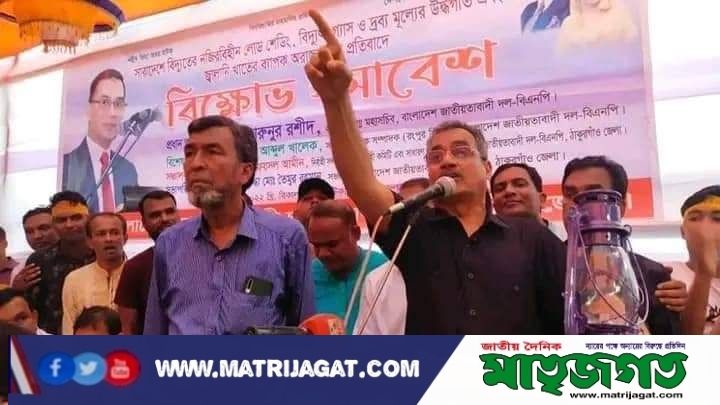 রোববার (৩১ জুলাই) বিকেলে ঠাকুরগাঁও জেলা বিএনপির সারা দেশে লোডশেডিং, গ্যাস, দ্রব্যমূল্যের ঊর্ধ্বগতি ও জ্বালানি খাতের অনিয়মের প্রতিবাদে বিক্ষোভ সমাবেশে প্রধান অতিথির বক্তব্যে এসব কথা বলেন বিএনপির যুগ্ম-মহাসচিব ও চাপাইনবাবগঞ্জ-৩ আসনের সংসদ সদস্য মো. হারুন অর রশিদ।
