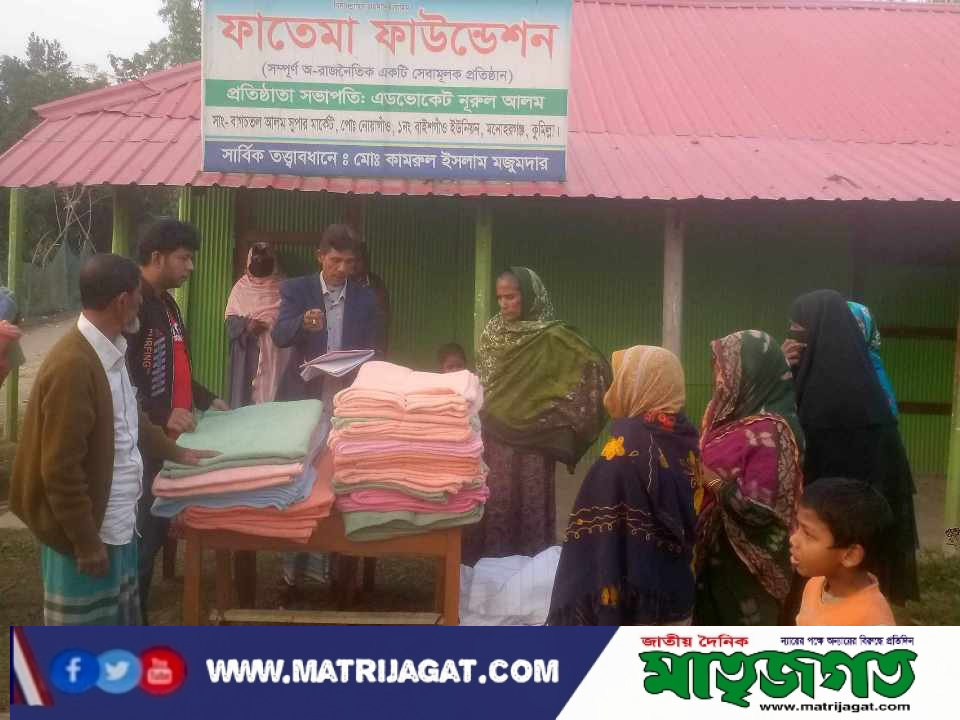 মোঃ মাসুদ আলম বেপারী স্টাফ রিপোর্টার, কুমিল্লা: সারাদেশের মানুষ যখন শীতে যবুথবু তখনই প্রতি বছরের ন্যায় শীতবস্ত্র (কম্বল) নিয়ে অসহায় শীতার্ত গরীব অসহায় মানুষদের পাশে এসে দাঁড়িয়েছে কুমিল্লার মনোহরগঞ্জ উপজেলার বাইশগাঁও ইউনিয়ন ফাতেমা ফাউন্ডেশন। শনিবার মনোহরগঞ্জ উপজেলাধীন বাইশগাঁও ইউনিয়নের বাগচতল গ্রামে ফাতেমা ফাউন্ডেশনর অফিসের সামনে এ শীতবস্ত্র (কম্বল) বিতরণের উদ্বোধন করা হয়। অফিসের সামনে নিকটতম বাগচতল, আন্দিরপাড়, ও আতাকরা তিন গ্রামে বিতরণের পর। ফাতেমা ফাউন্ডেশনের প্রতিষ্ঠাতা সভাপতি এডভোকেট নুরুল আলমের নির্দেশে শীতার্ত গরীব অসহায়দের বাড়ি বাড়ি নিয়ে পৌঁছে দেওয়া হয় শীতবস্ত্র (কম্বল)। শীতবস্ত্র (কম্বল) বিতরণ অনুষ্ঠানে উপস্থিত ছিলেন প্রতিষ্ঠাতা সদস্য মোঃ মনিরুজ্জামান (ভুইঁয়া), মোঃ খোরশেদ আলম মজুমদার, রিয়াজ উদ্দিন প্রমুখ। পরে বিভিন্ন বাড়িতে গিয়ে ফাতেমা ফাউন্ডেশন সদস্যবৃন্দের উপস্থিতিতে তিনশতাধিক শীতার্ত মানুষের হাতে তুলে দেওয়া হয় শীতবস্ত্র (কম্বল)। ফাতেমা ফাউন্ডেশনের দেওয়া কম্বল হাতে পেয়ে অসহায় মানুষের চোখে-মুখে হাসি ফুটে উঠার দৃশ্য পরিলক্ষিত হয়। এসময় এসব অসহায় মানুষের পাশে দাঁড়ানোর জন্য সমাজের বিত্তবানদের প্রতি আহ্বান জানান ফাতেমা ফাউন্ডেশন প্রতিষ্ঠাতা সভাপতি এডভোকেট নুরুল আলম ।