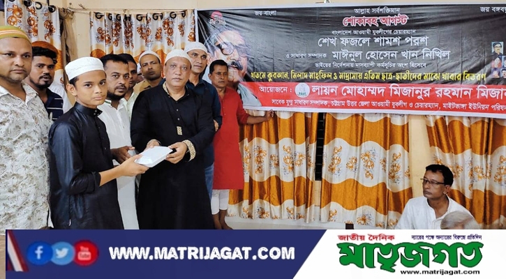 জাতির পিতা বঙ্গবন্ধু শেখ মুজিবুর রহমানের ৪৭তম শাহাদতবার্ষিকী ও জাতীয় শোক দিবস উপলক্ষে চট্টগ্রাম উত্তর জেলা যুবলীগের সাবেক যুগ্ম-সাধারণ সম্পাদক ও সন্দ্বীপ উপজেলায় মাইটভাঙ্গা ইউনিয়ন পরিষদের চেয়ারম্যান মিজানুর রহমান মিজানের উদ্যোগে কুরআন খতম,দোয়া এবং ১ হাজার দুস্থ,এতিম ও অসহায় মানুষকে খাবার বিতরণ করা হয়েছে।সোমবার(১৫ আগস্ট)বিকেলে বিকেলে মাইটভাঙ্গা ফয়জুল উলুম মাদ্রাসায় দোয়া মাহফিল ও দুস্থ অসহায় মানুষের মাঝে এ খাবার বিতরণ করা হয়