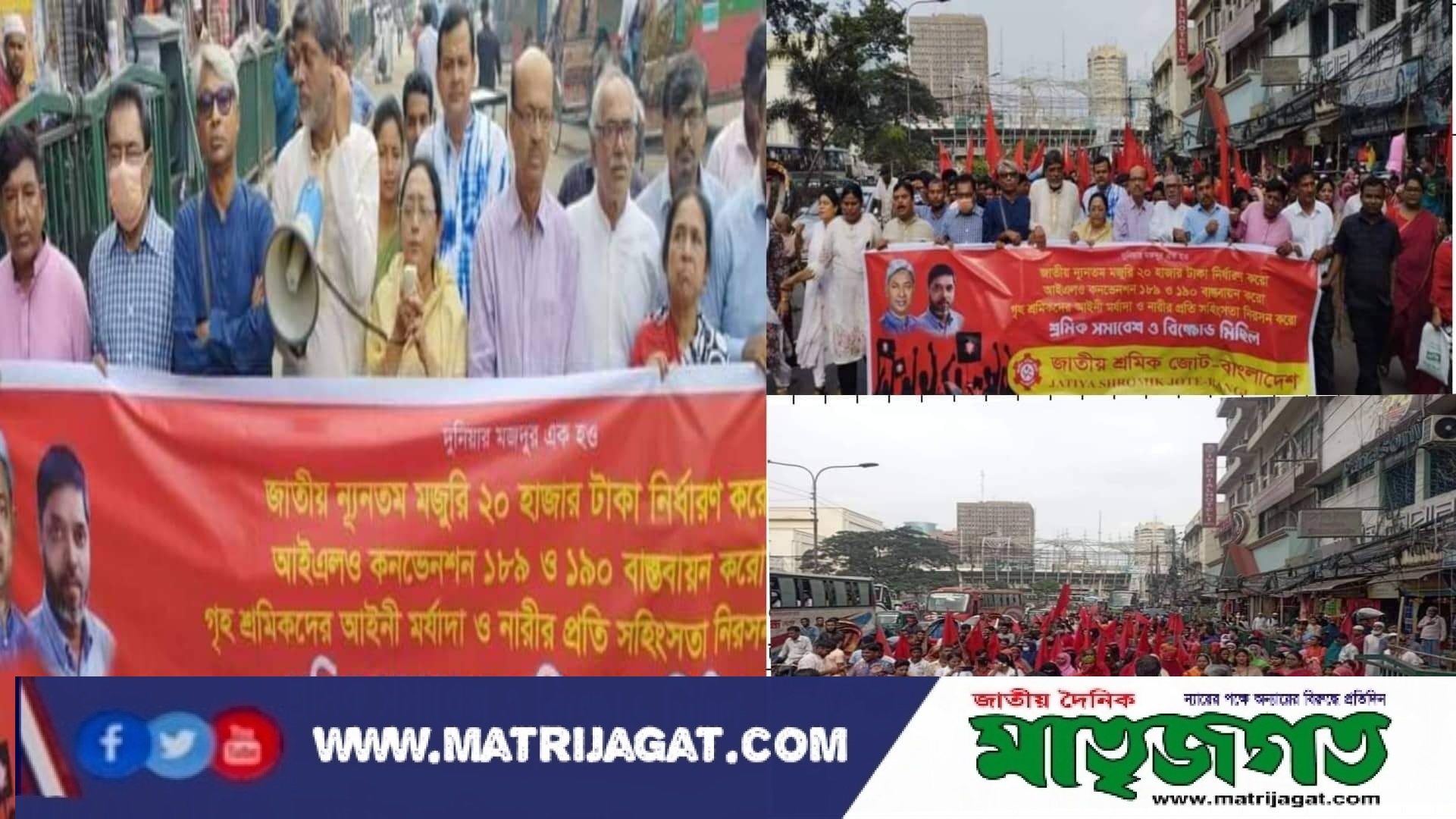 শ্রমিকদের  জাতীয় ন্যূনতম মজুরী ২০ হাজার টাকা নির্ধারণ করো, আইএলও কনভেনশন১৮৯ ও ১৯০ বাস্তবায়ন করো এবং  গৃহশ্রমিকদের আইনি মর্যাদা নিশ্চিত ও নারীর প্রতি সহিংসতা বন্ধের দাবিতে সমাবেশ ও বিক্ষোভ মিছিল অনুষ্ঠিত।