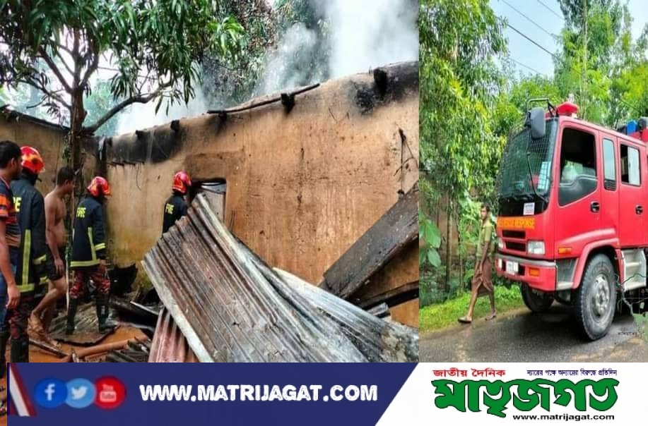 শ্রীপুরে ইউনিয়ন আ’লীগের সহ-সভাপতি’র বসত বাড়িতে আগুন তিনটি ঘর পুড়ে ছাই