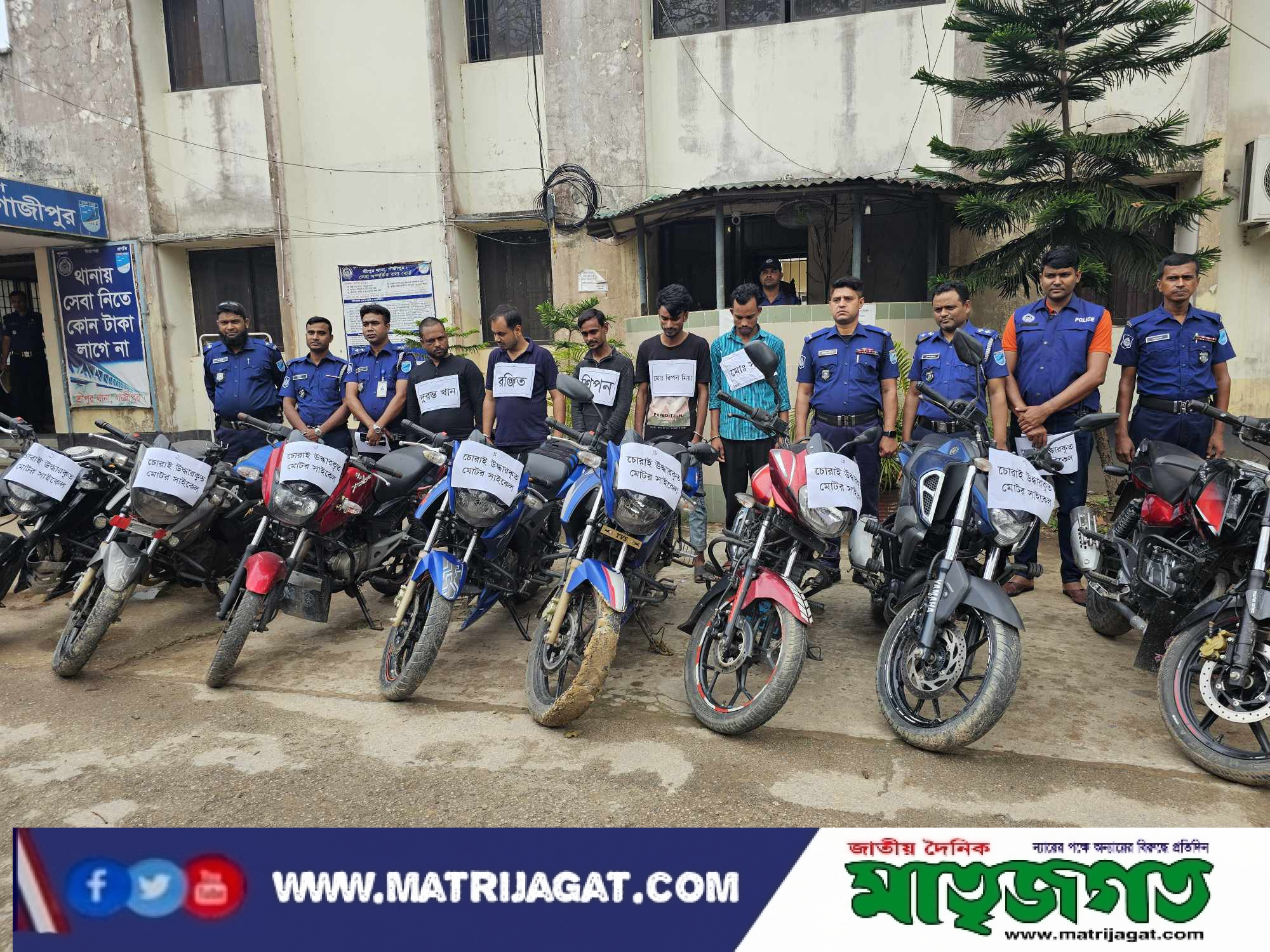 শ্রীপুরে চুর চক্রের ৫ সদস্যকে গ্রেফতার চোরাইকৃত ১০টি মোটরসাইকেল উদ্ধার